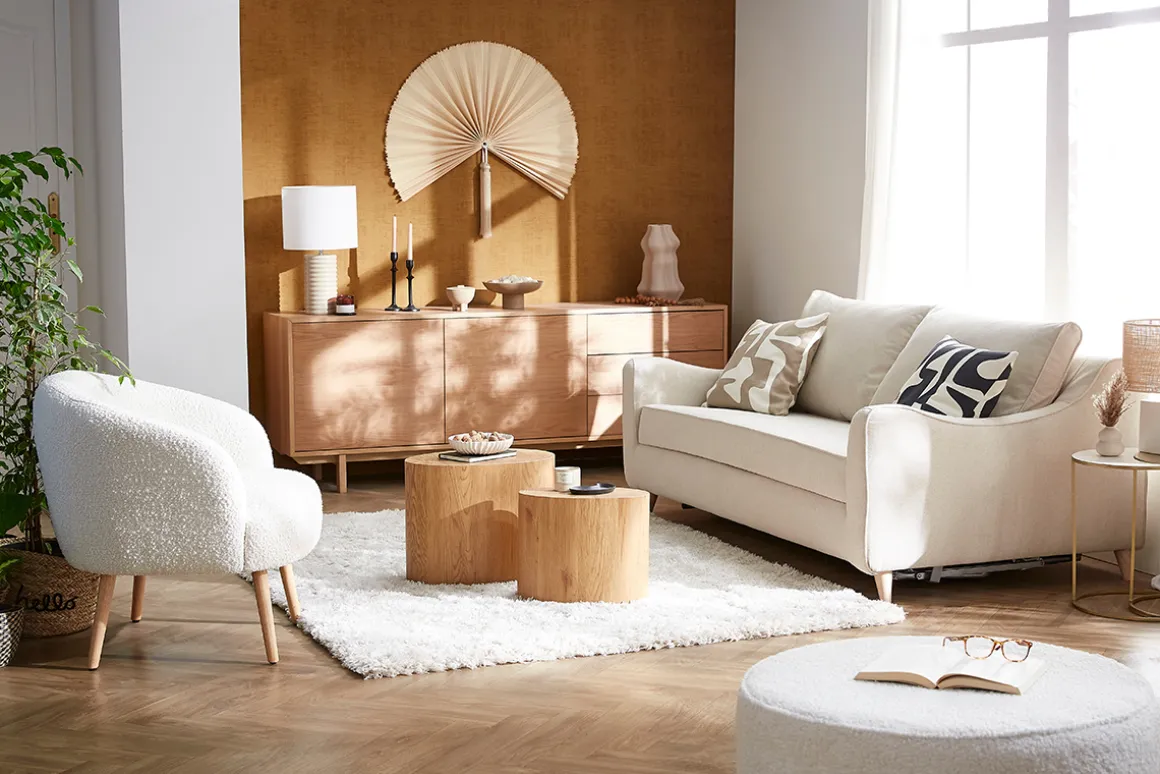 Cette assise généreuse se marie à merveille avec les jolies (et nombreuses) tables basses en bois qui composent notre collection.