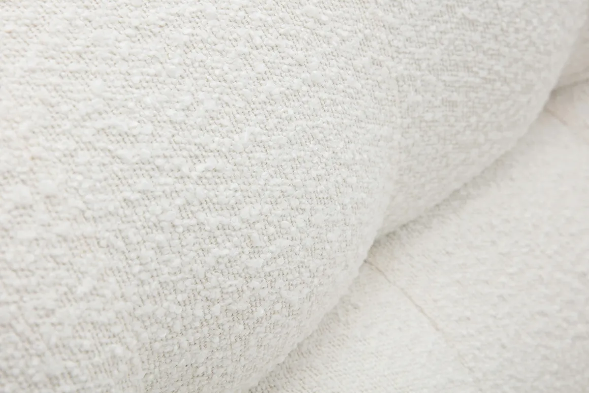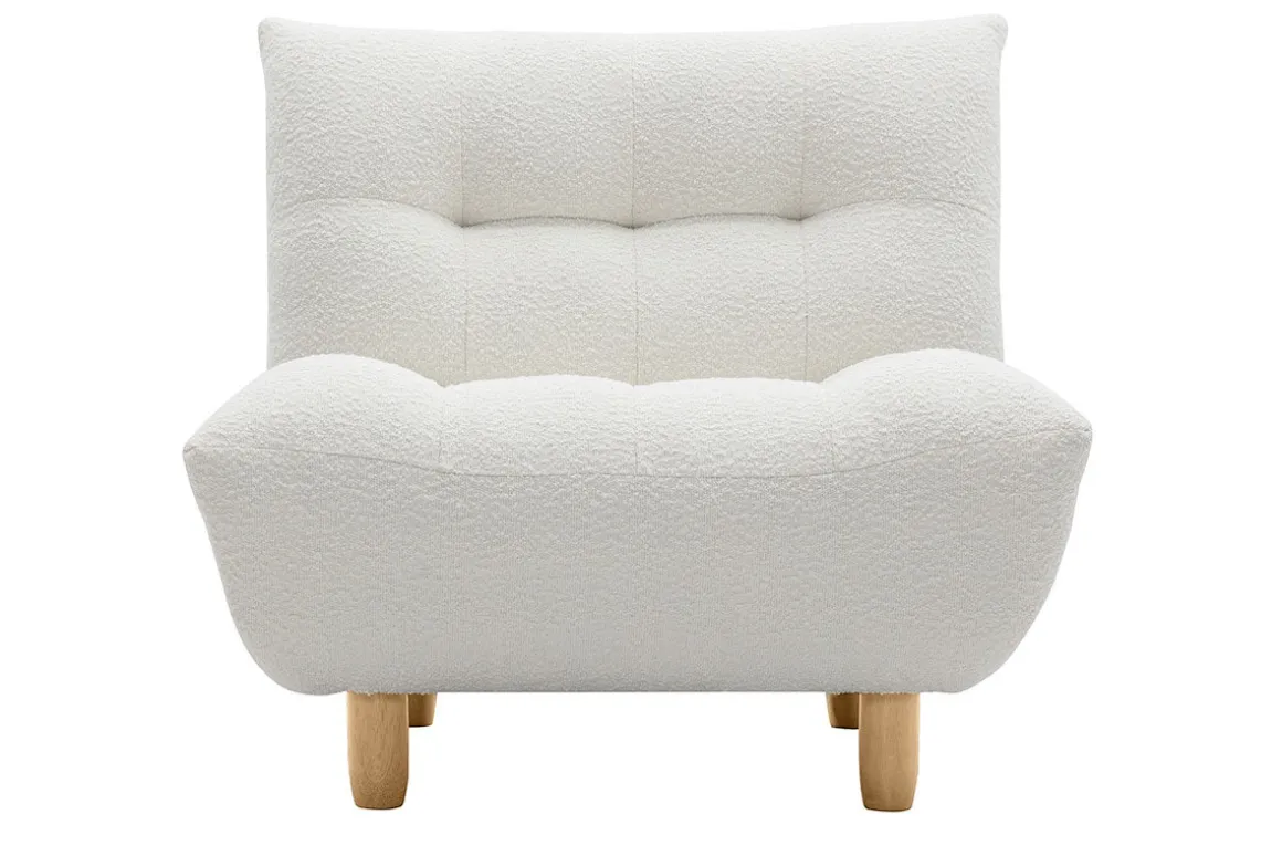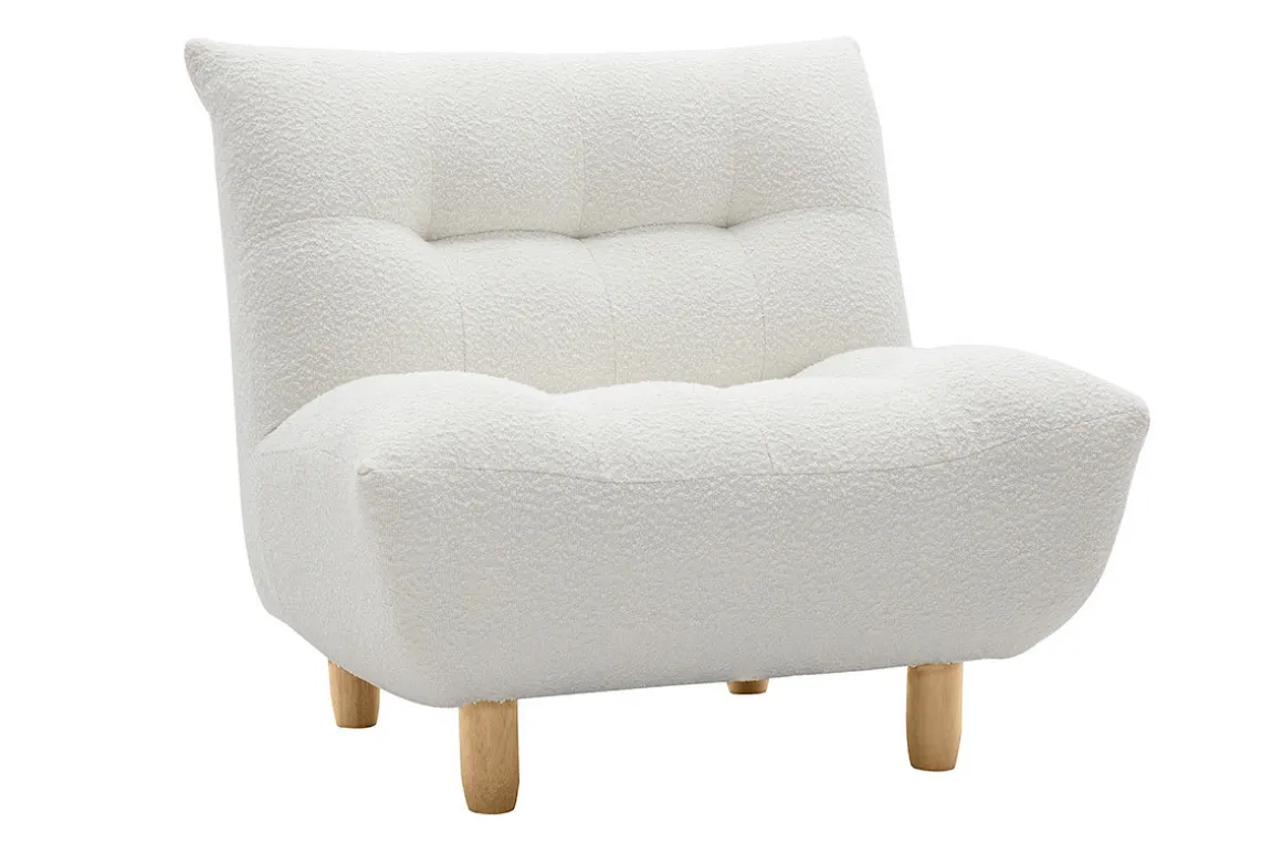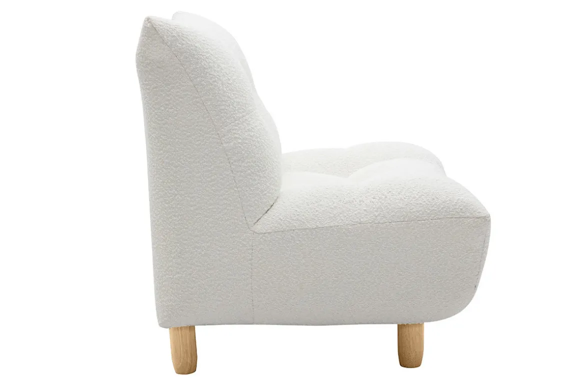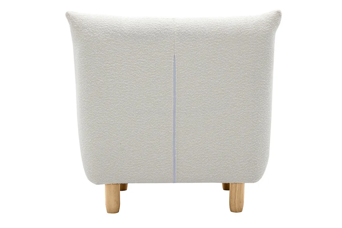 Pour un confort optimal dans votre salon, optez pour le fauteuil scandinave en tissu effet laine bouclée blanc et chêne YUMI.