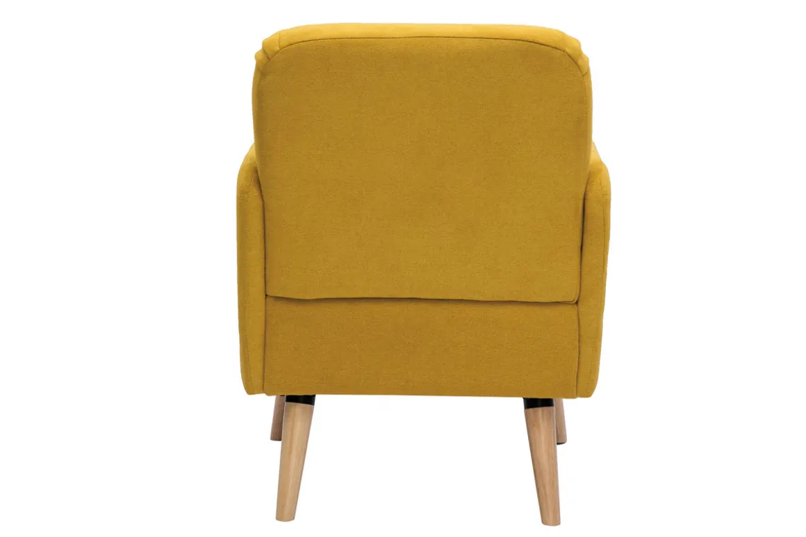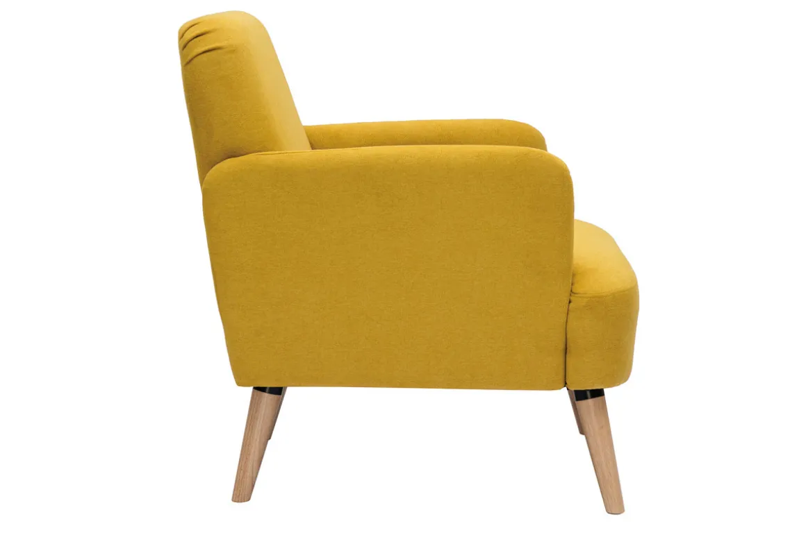 Avec ses lignes arrondies, son design épuré et sa jolie combinaison de matières, ce fauteuil possède tout ce qui fait le charme des meubles scandinaves. Le piètement en hévéa massif et le tissu effet velours jaune moutarde de l’assise en font une pièce indémodable et facile à intégrer dans différents styles de séjour.