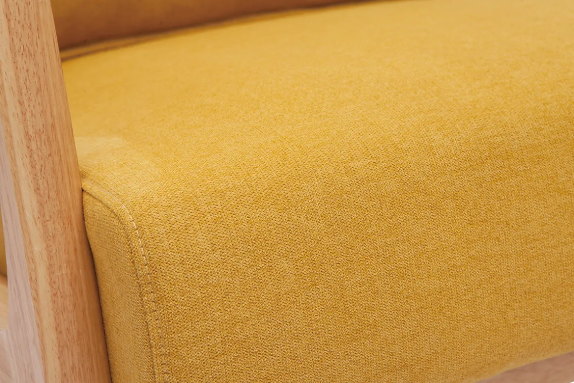Fauteuil jaune moutarde et bois livré prêt à monter.