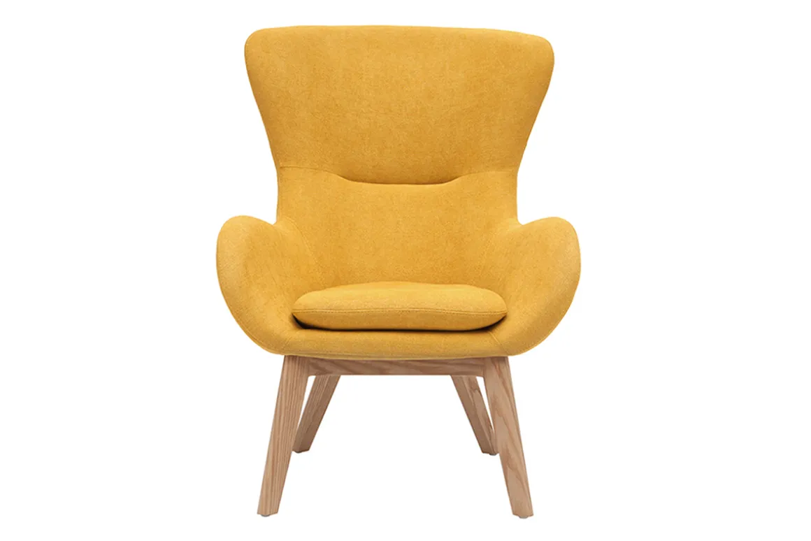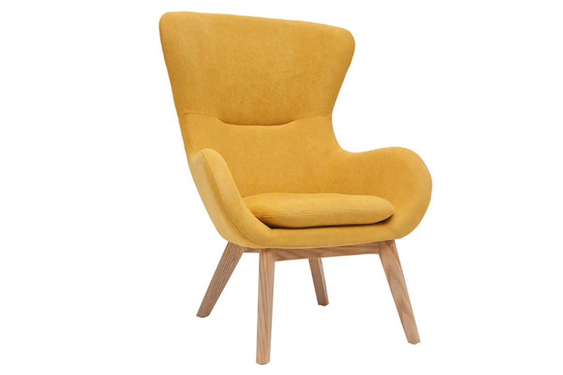 Parce qu’il réunit confort et douceur, ce fauteuil en tissu effet velours jaune est le compagnon parfait pour se détendre.