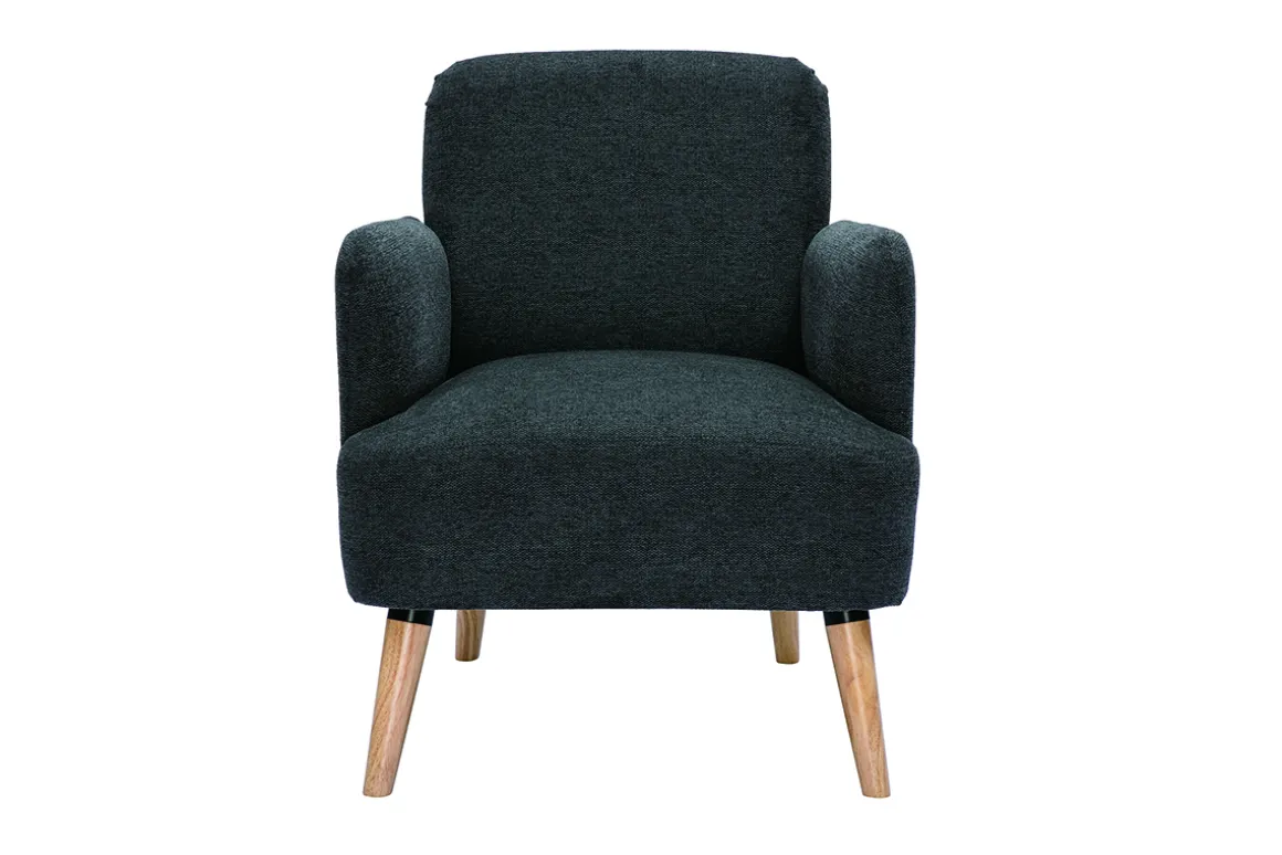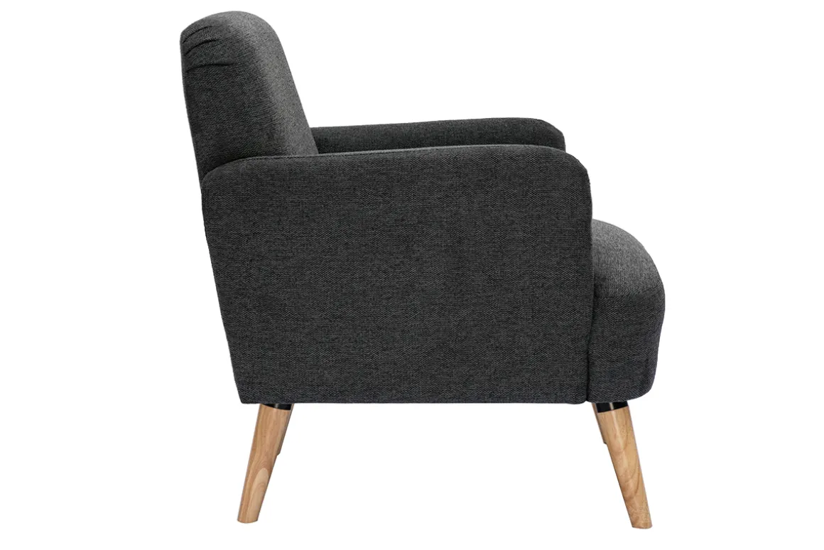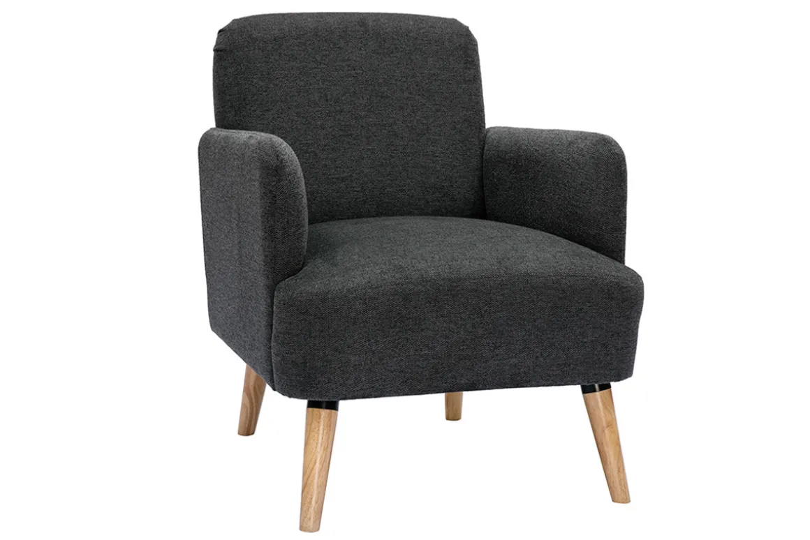 Avec ses lignes arrondies, son design épuré et sa jolie combinaison de matières, ce fauteuil possède tout ce qui fait le charme des meubles scandinaves. Le piètement en hévéa massif et le tissu effet velours texturé gris foncé de l’assise en font une pièce indémodable et facile à intégrer dans différents styles de séjour.