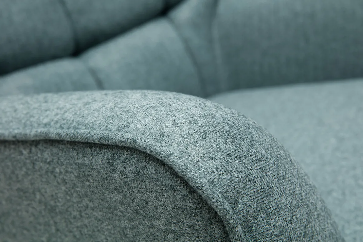 Le fauteuil AVERY semble nous inviter à la détente. C’est le dossier capitonné et le rembourrage de l’assise qui donnent cet effet unique. Ils ont été associés à une forme évasée et des dimensions généreuses pour un maximum de confort. Ce grand fauteuil vert de gris et bois clair réunit également larges accoudoirs et dossier haut, le parfait combo pour tous ceux qui aiment se lover dans leur fauteuil de salon. Le piètement en hévéa massif et le revêtement en tissu apportent une touche chaleureuse à l’ensemble.
