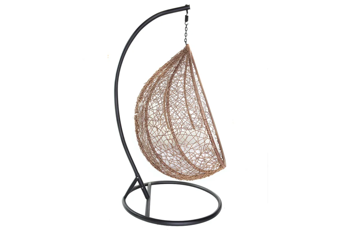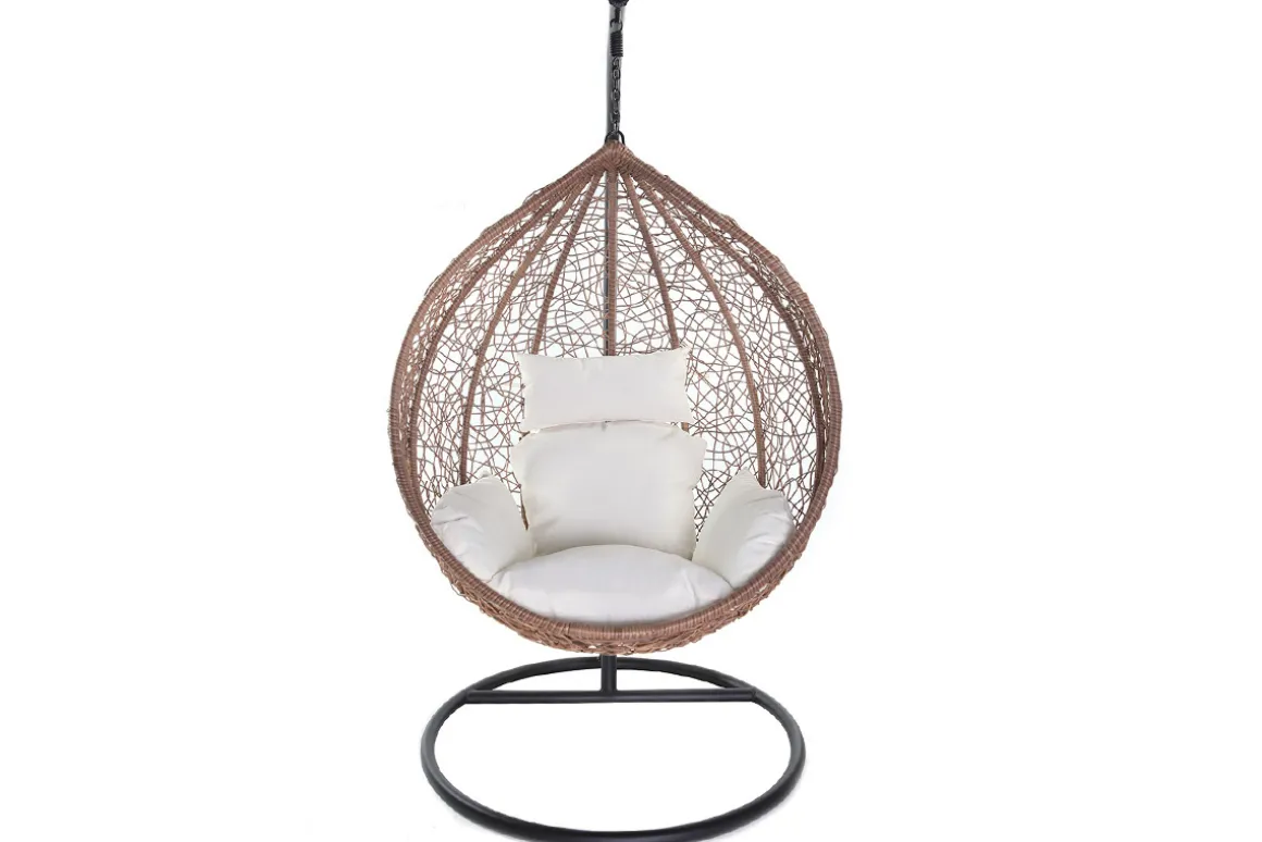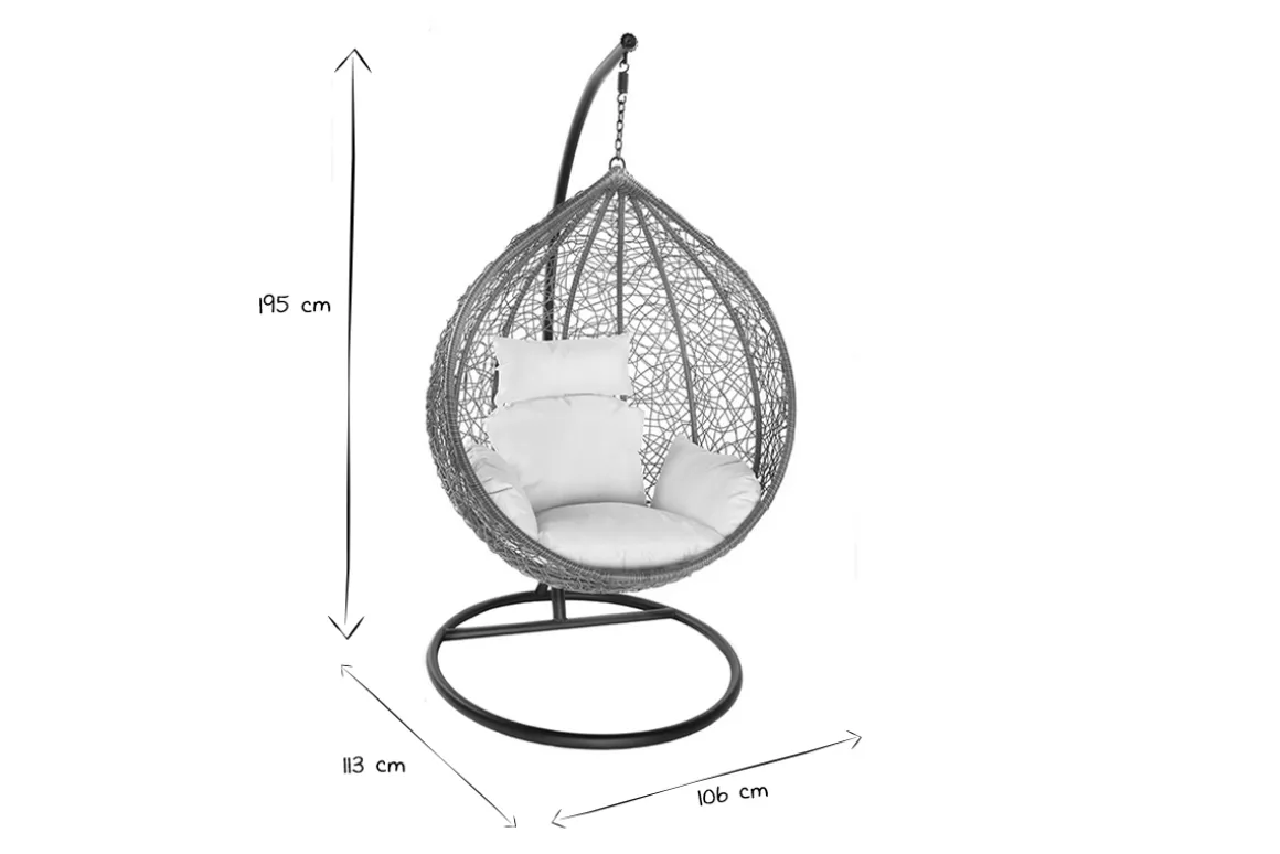 Fauteuil suspendu vendu avec son pied et ses coussins amovibles lavables à la main. Livré prêt à monter.