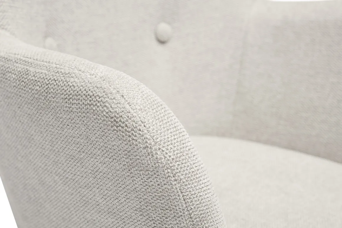 En effet, ce fauteuil possède un esprit nordique grâce à son revêtement en polyester associé à son piètement en bois clair.