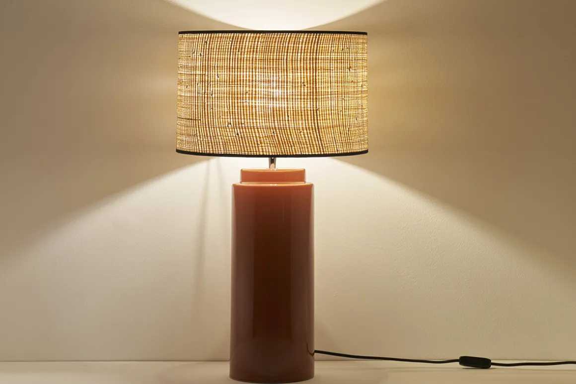 Avec sa grande base cylindrique en céramique émaillée et son abat-jour en raphia naturel, cette lampe à poser terracotta arbore un jeu de matières justement maîtrisé. Elle offre le parfait mélange entre modernité et authenticité ! On aime particulièrement le biais en coton noir qui souligne délicatement l’abat-jour. Avec son look épuré, cette lampe à poser fabriquée en Europe s’harmonise tout en douceur avec le reste de votre intérieur.