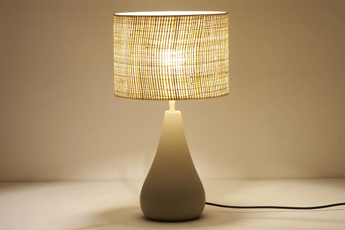 Forme singulière, raphia naturel, mariage de matières : on vous présente la lampe à poser PYRUS imaginée par les designers Miliboo.