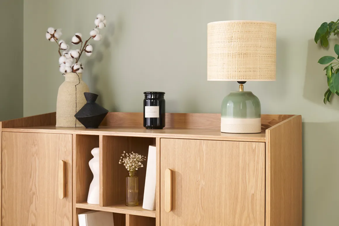 Lampe à poser PIEGA : du vert et du beige de pied en cap !