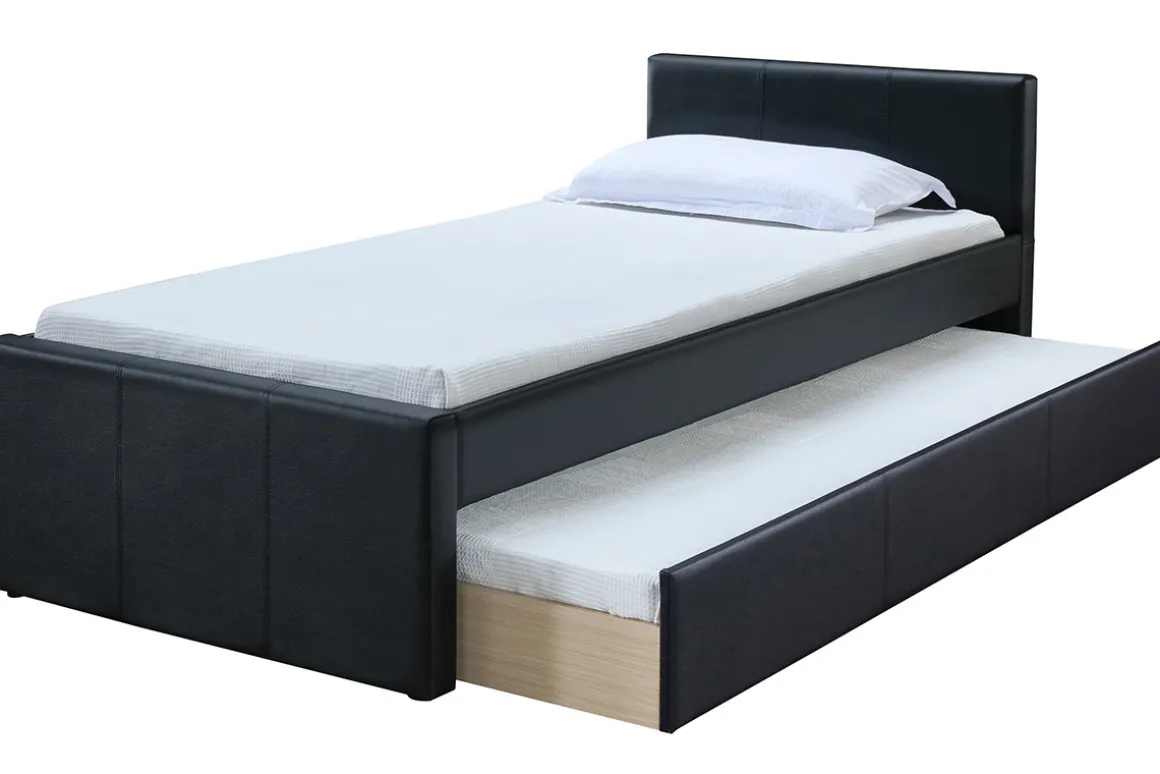 Lit gigogne noir 90×190 cm MACCO vendu avec sommiers. Livré prêt à assembler. Les matelas ne sont pas inclus.
