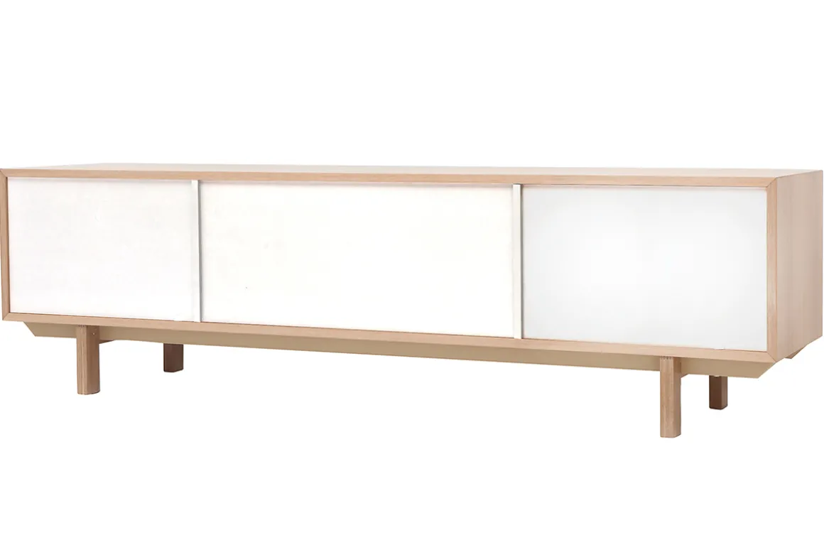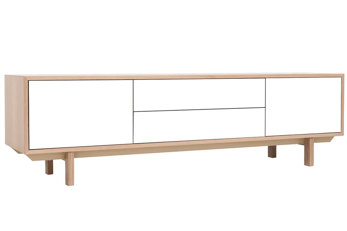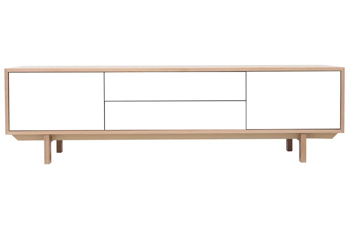 Le meuble TV SID associe le bois clair au blanc pour des couleurs naturelles et lumineuses qui donneront de suite un coup d’éclat et de lumière à une pièce un peu trop sombre. Si vous aimez le style nordique/scandinave, ce meuble contemporain sublimera votre intérieur.
