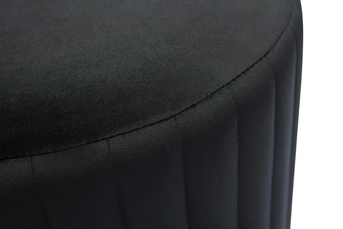 Ce petit pouf en velours noir sera parfait pour passer un moment de détente. Il apporte confort et douceur grâce à son velours côtelé élégant et son assise ferme (densité de 25 kg/m3). L’association avec son pied métal offre un visuel riche empli de contraste et de raffinement.