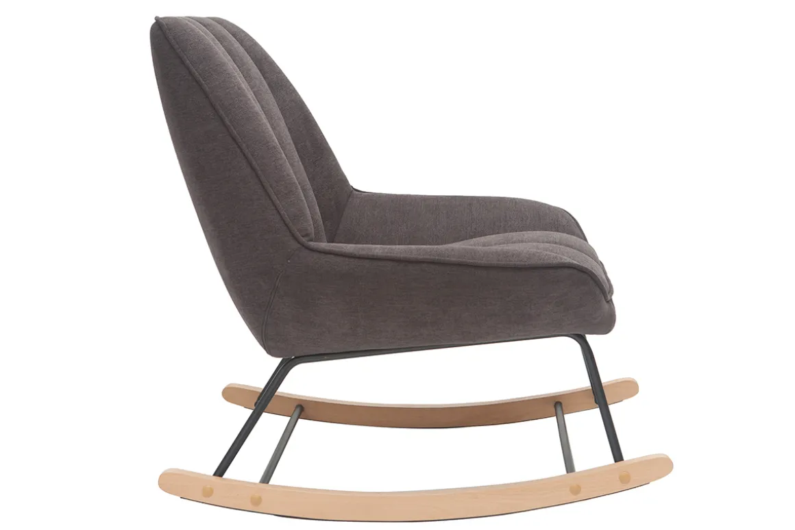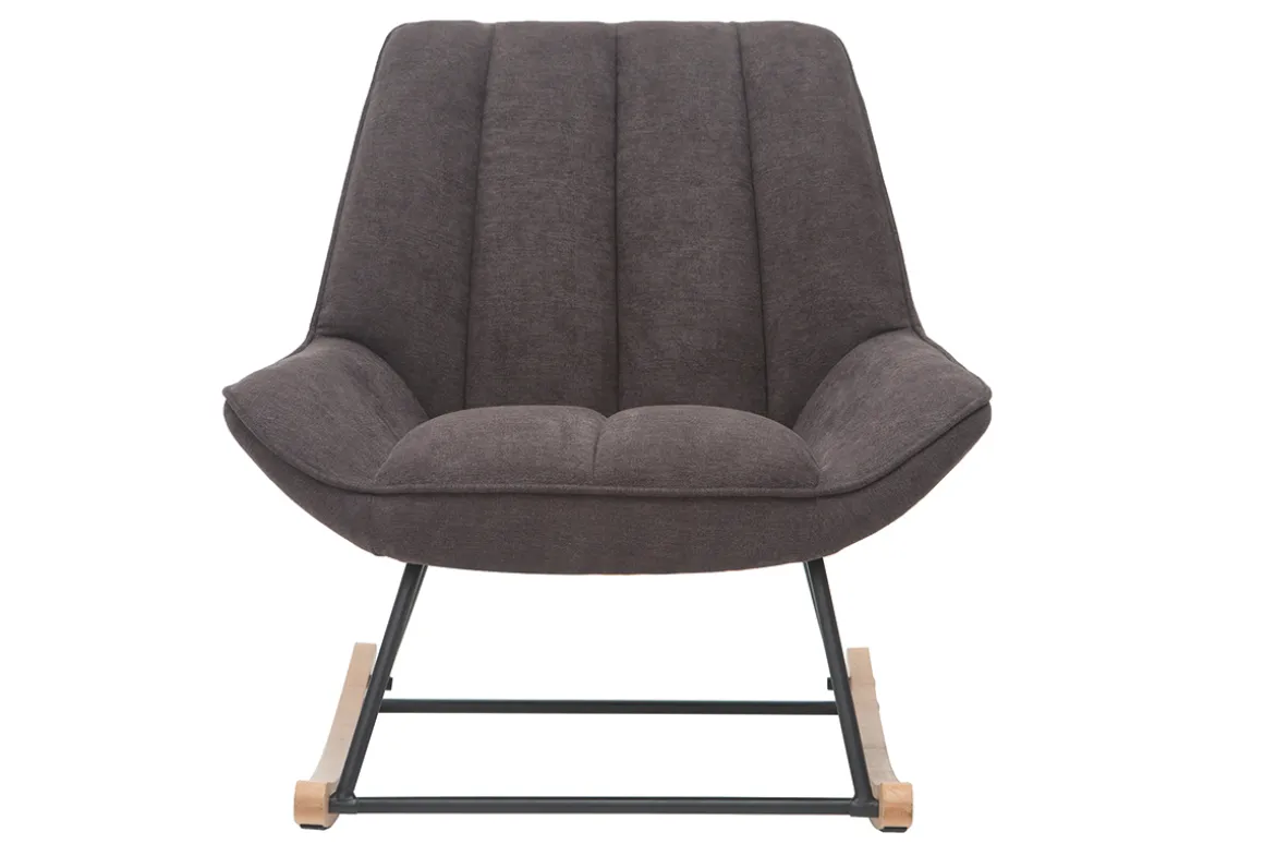 Rocking chair design en tissu velours gris foncé, métal noir et bois clair BILLIE livré prêt à assembler.
