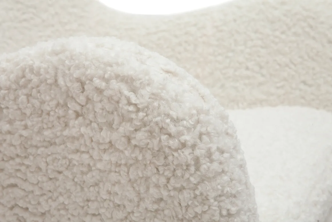 Ultra tendance, le fauteuil à bascule fait son grand retour sur le devant de la scène déco. Laissez-vous bercer par ses doux mouvements et adoptez le rythme du « slow life ». Ce rocking-chair au design rétro scandinave présente une silhouette tout en courbes. Des volumes teintés de naturel grâce au revêtement en tissu effet peau de mouton et pieds en bois clair, que seules les renforts en métal noir viennent moderniser.