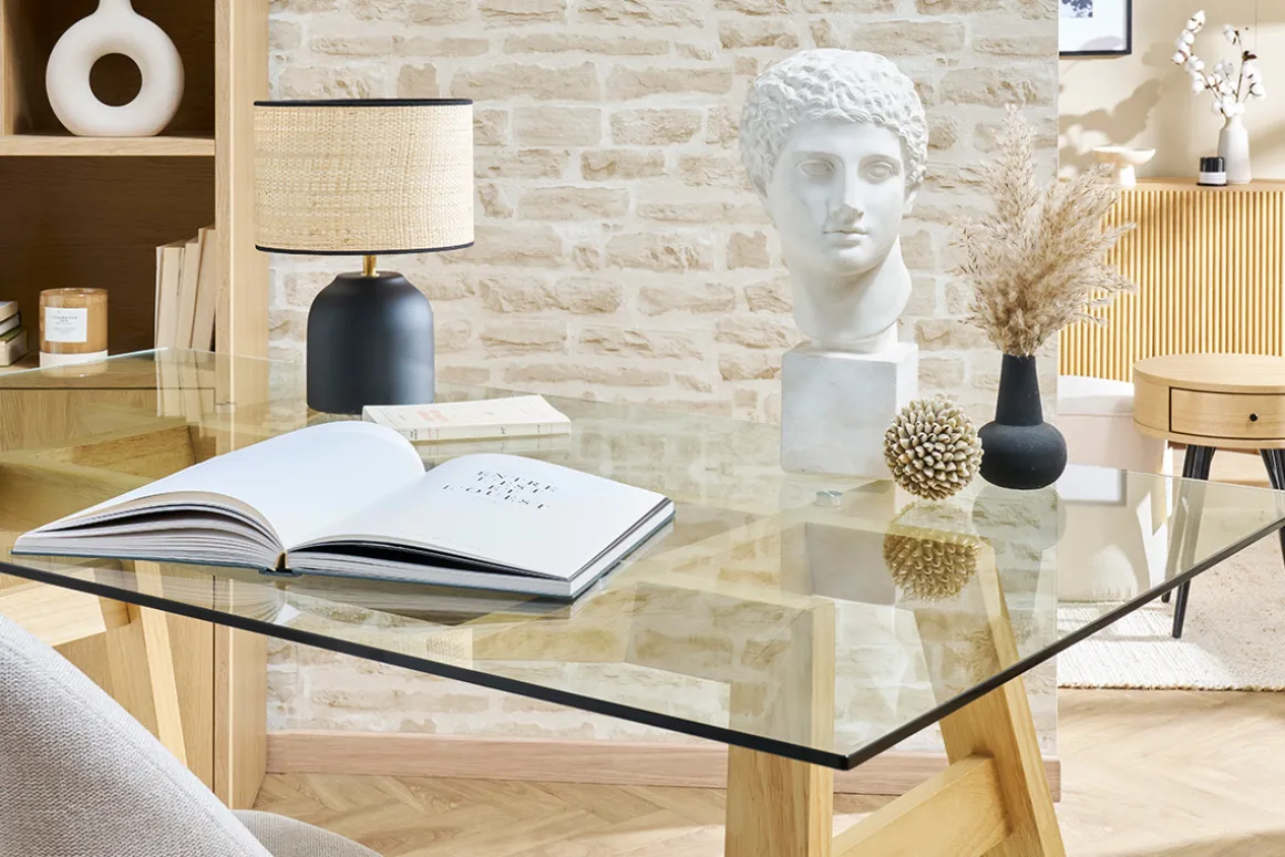 Grâce à son allure contemporaine et épurée, cette table à manger se marie facilement à tous les styles de décoration. Elle comprend, en effet, un élégant plateau en verre qui laisse transparaître un joli piètement en hévéa massif. Oubliez les pièces imposantes et massives qui alourdissent la pièce : grâce à son plateau en verre transparent, cette table est la parfaite combinaison entre force et légèreté visuelle, élégance et sobriété.
