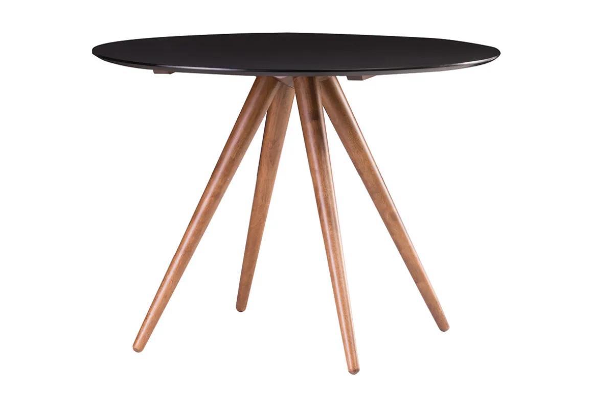 La forme ronde de la table à manger WALFORD lui permet d’optimiser l’espace et de rassembler 4 convives malgré son faible encombrement. La couleur de son piètement finition noyer ainsi que son plateau noir réchaufferont immédiatement votre salle à manger.