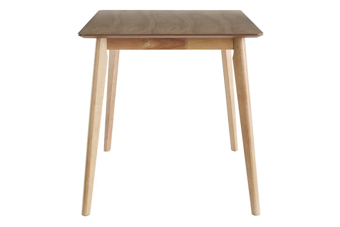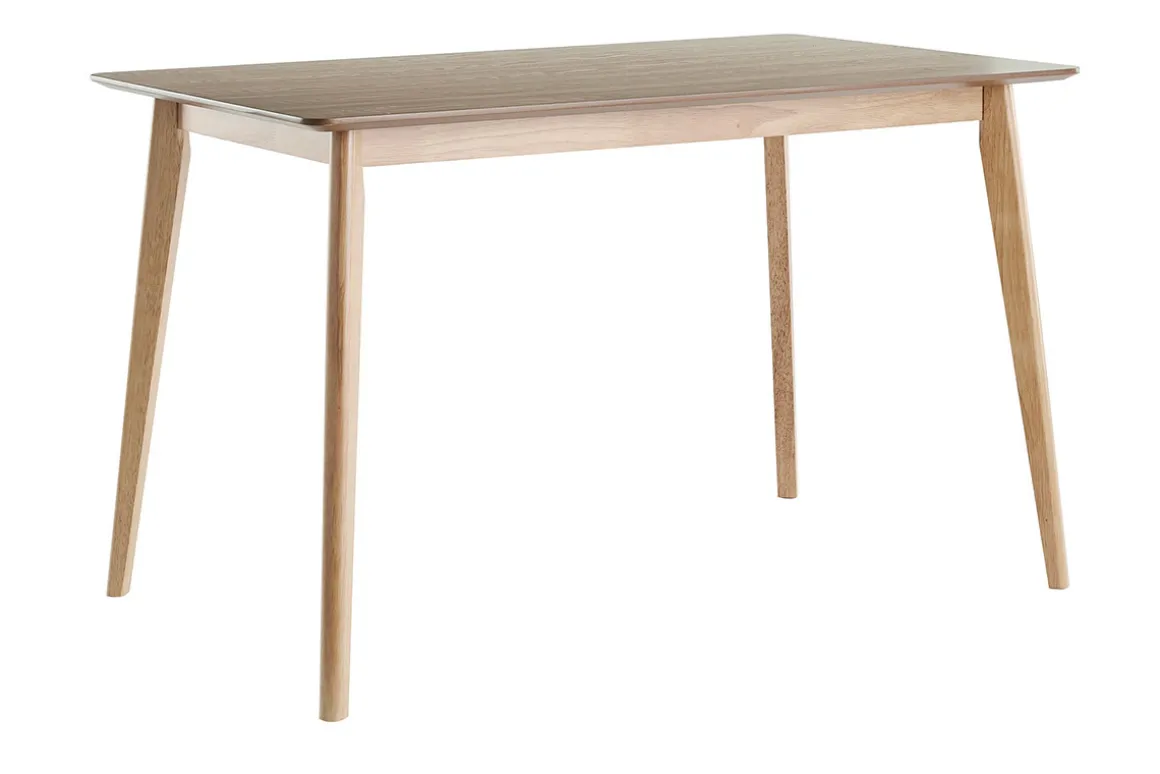 Le plateau en panneaux de fibres de bois placage frêne repose sur de solides pieds en hévéa massif. On aime particulièrement les reflets dorés du bois ainsi que ses jolies veines et noeuds qui renforcent son caractère vivant.