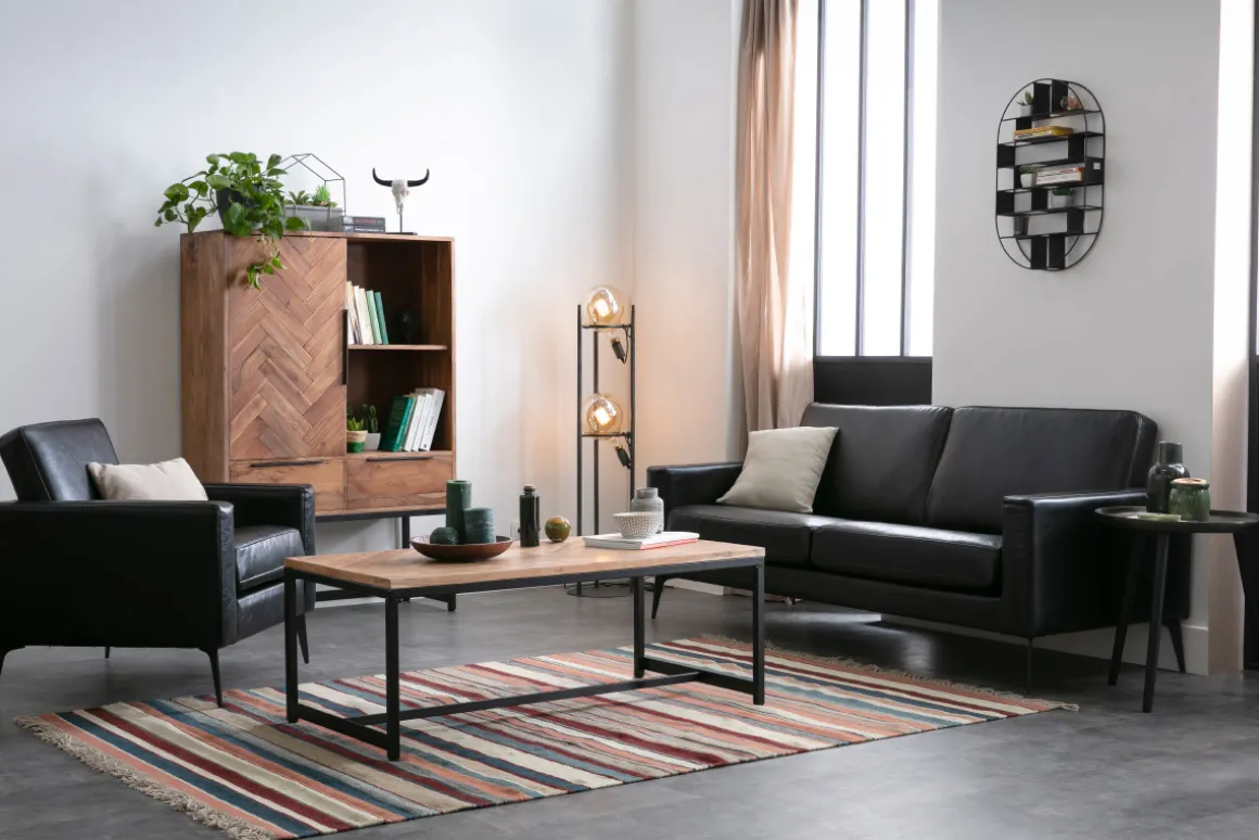 Les dimensions de la table basse rectangulaire en bois massif STICK L120 x P60 cm permettent d’aménager un véritable espace convivial. On l’accompagne d’un pouf tendance et d’un joli tapis graphique pour un salon moderne et chaleureux.