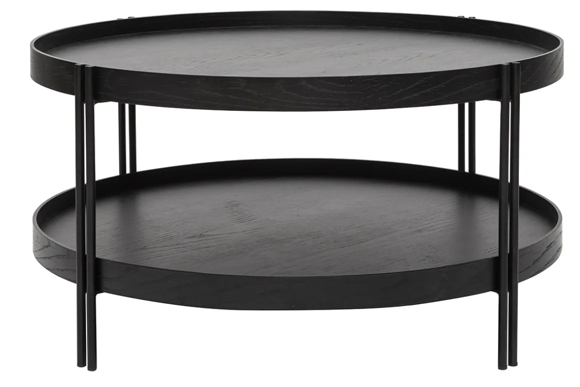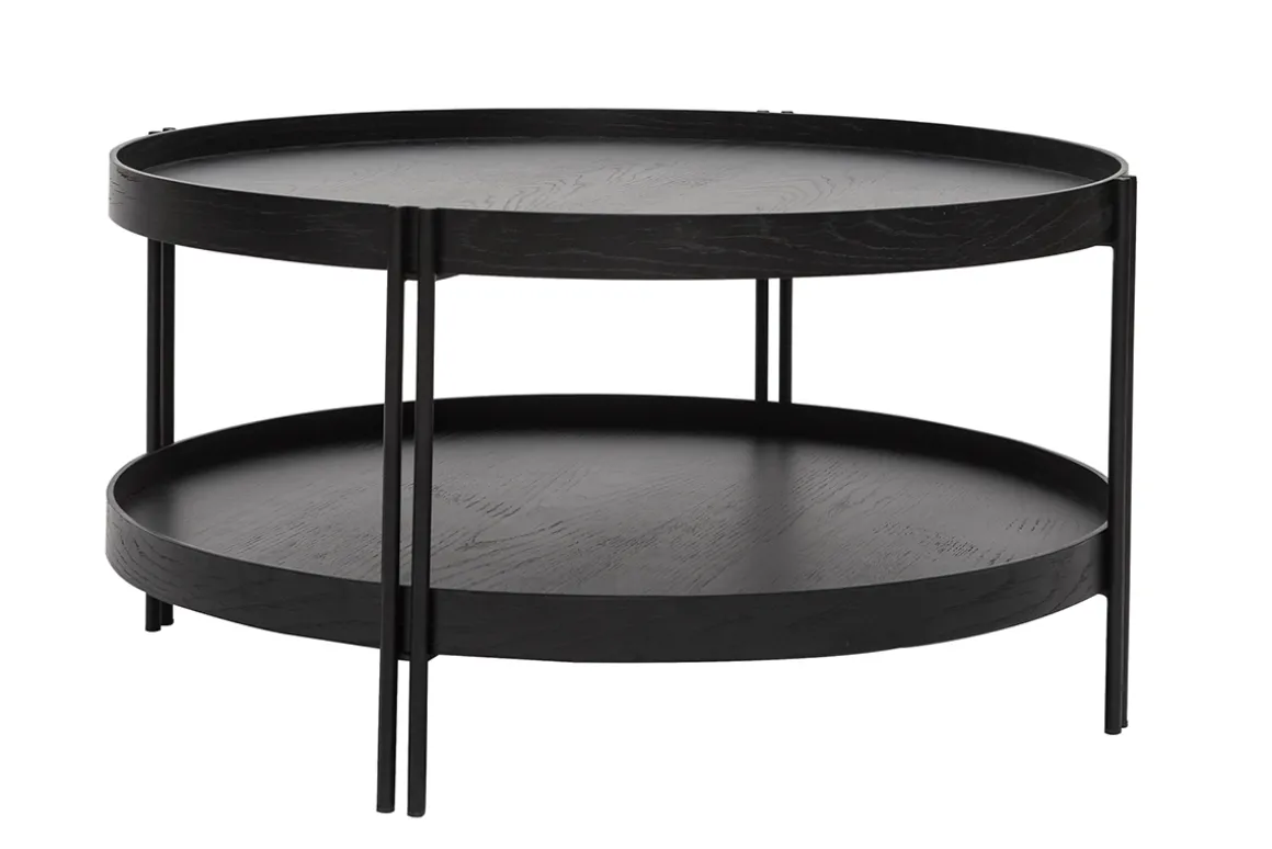 La table basse noire TWICE est une table fonctionnelle. Ses 80 cm de diamètre offrent une belle surface pour aménager un espace convivial dans le salon. Grâce aux deux plateaux identiques, on double la surface de rangement. Magazines et télécommandes n’encombreront plus la surface !