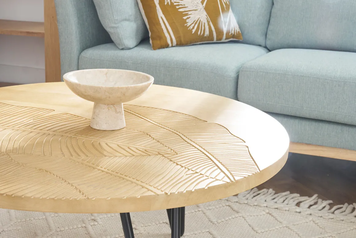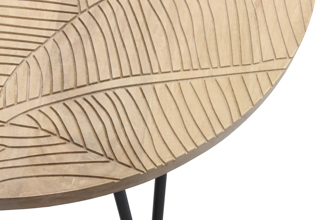 Conçue selon des techniques artisanales, cette table basse ronde offre un superbe rendu « fait main » grâce aux nuances du manguier travaillé et la gravure inspirée de feuillages sur le plateau. Ces dessins ornementaux font de la table VIBES une pièce de mobilier originale et authentique qui habillera avec charme votre pièce de vie. Arborant un style unique, elle deviendra un élément incontournable de votre décoration.