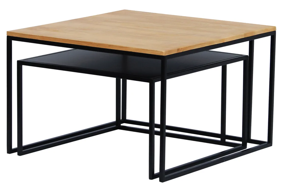 Set composé de deux tables fabriquées artisanalement. Chaque pièce est unique.