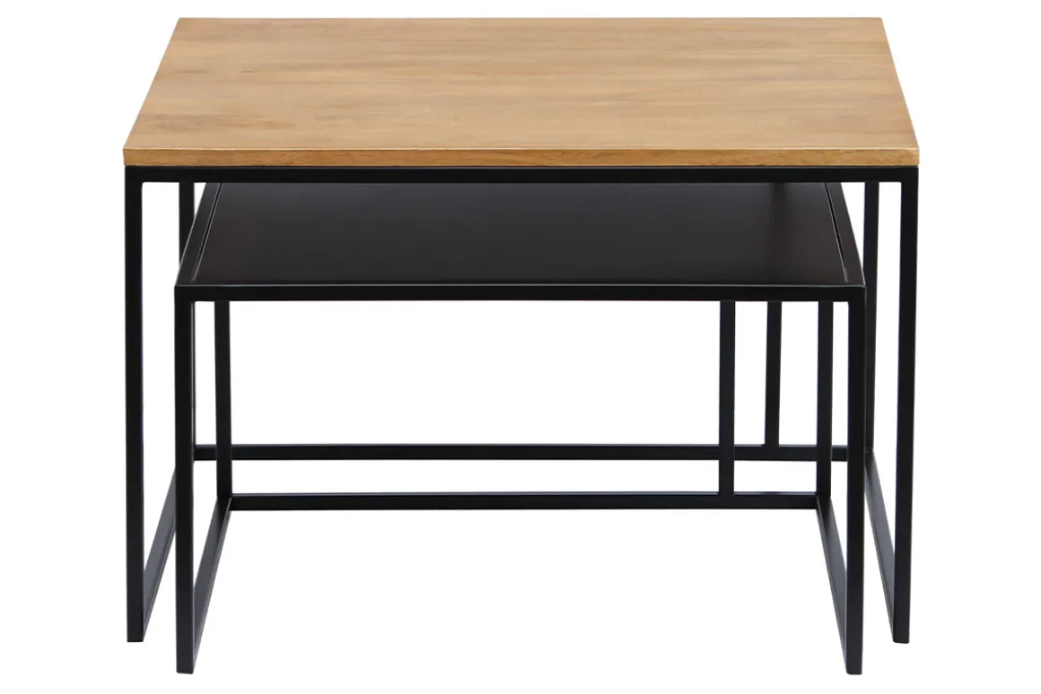 Carrées, leurs lignes sont simples et épurées. Les piétements sont fins et se veulent travaillés dans la continuité des plateaux qu’ils soutiennent. Si l’une arbore un total look métallique noir, l’autre joue la carte du naturel. Avec un plateau en manguier massif, cette seconde table contribue grandement à former un bel ensemble empreint de charme et de cachet.