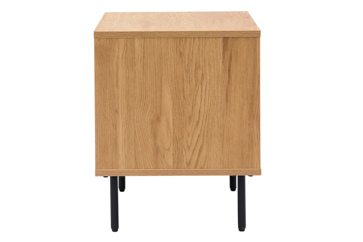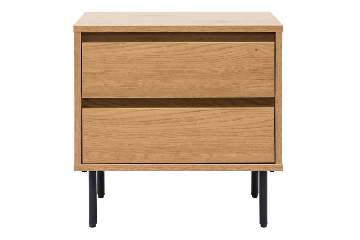 Avec ARAGON, bois et métal prouvent une fois de plus qu’ils forment le tandem parfait. Composée d’un caisson en mélamine à l’effet chêne nervuré et d’un piètement métallique noir, la table de chevet ARAGON n’est pas sans rappeler les pièces de mobilier à l’esprit industriel. Ce joli mariage de matières est mis en valeur par une silhouette épurée aux lignes nettes. Chaleureuse sans être dépourvue de modernité, cette table de nuit à tiroirs permettra de composer une chambre très cosy !