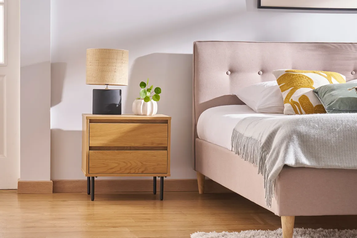 Livres et autres essentiels trouveront facilement leur place au sein des deux tiroirs qui composent cette table de chevet.