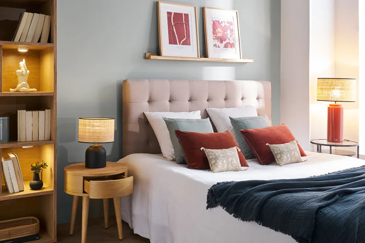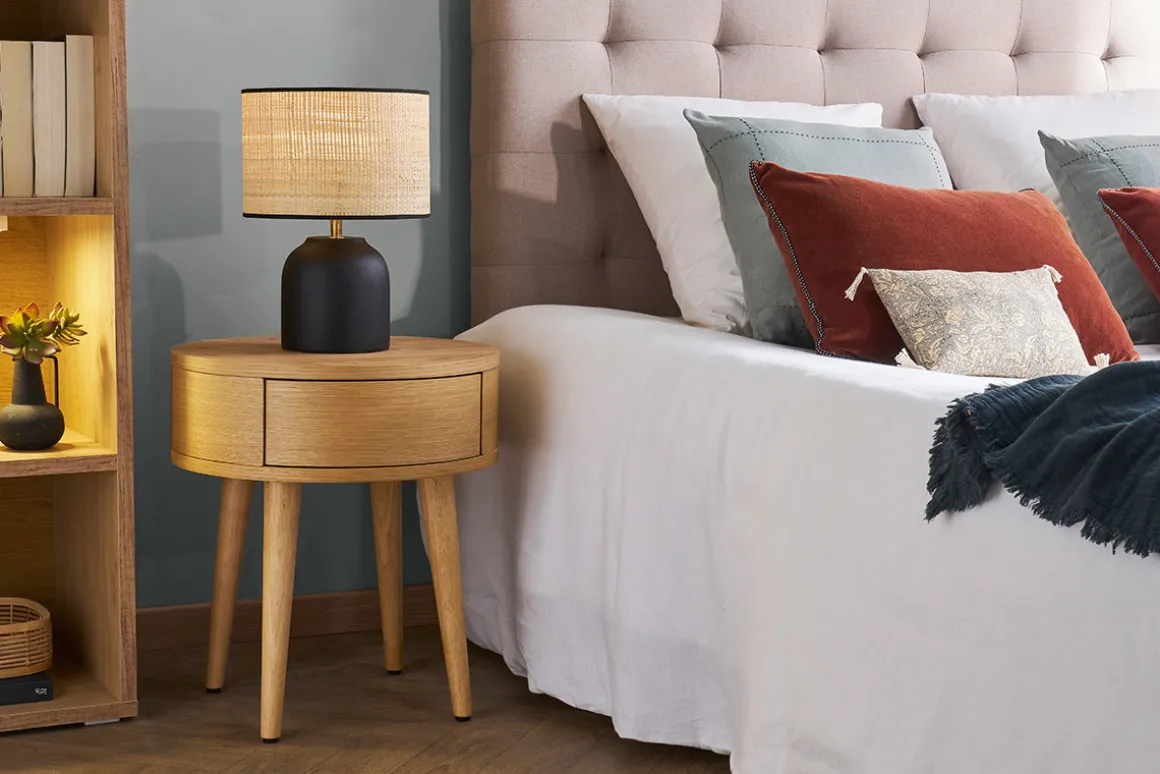 De chaque côté d’une tête de lit en velours, en tissu, en rotin, ou en bois, on aime la manière dont cette petite table de chevet ronde sublime la chambre et lui donne beaucoup d’allure. En plus de ponctuer joliment la déco de votre cocon, on adore son tiroir discret qui apporte un espace de rangement supplémentaire dans la chambre à coucher.