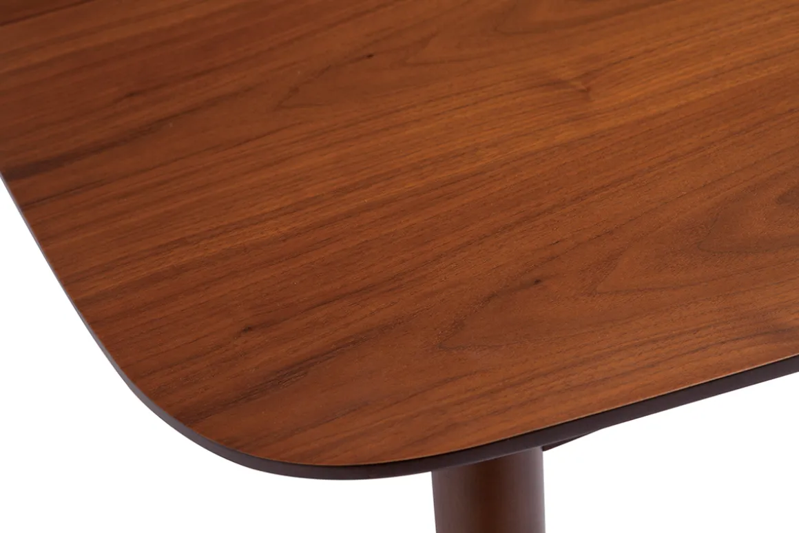 Le design de la table à manger NORDECO est inspiré des années 60. Ses lignes douces et pures, tout en arrondi, apportent de la légereté tandis que son placage noyer crée une atmosphère chaleureuse et raffinée. Joli mélange d’inspiration scandinave et vintage, c’est une table élégante et indémodable. Le bois foncé réchauffera votre pièce à vivre, apportera une touche rétro chic et s’intègrera dans tous les styles d’intérieur.