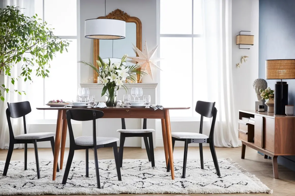 Avec un design inspiré des années 60, elle apportera à votre salle à manger une touche vintage tout en finesse. Sa forme épurée et son placage noyer donnent à cette table à manger extensible rectangulaire 4 à 6 personnes un style scandinave rétro. NORDECO est une table extensible en bois foncé indémodable, pouvant compléter une séjour d’inspiration nordique comme une salle à manger moderne ou vintage. En panneaux de fibres de bois 1.9 cm, cette table à manger rectangulaire à rallonge aux lignes douces permet de créer une atmosphère chaleureuse tout en sobriété.