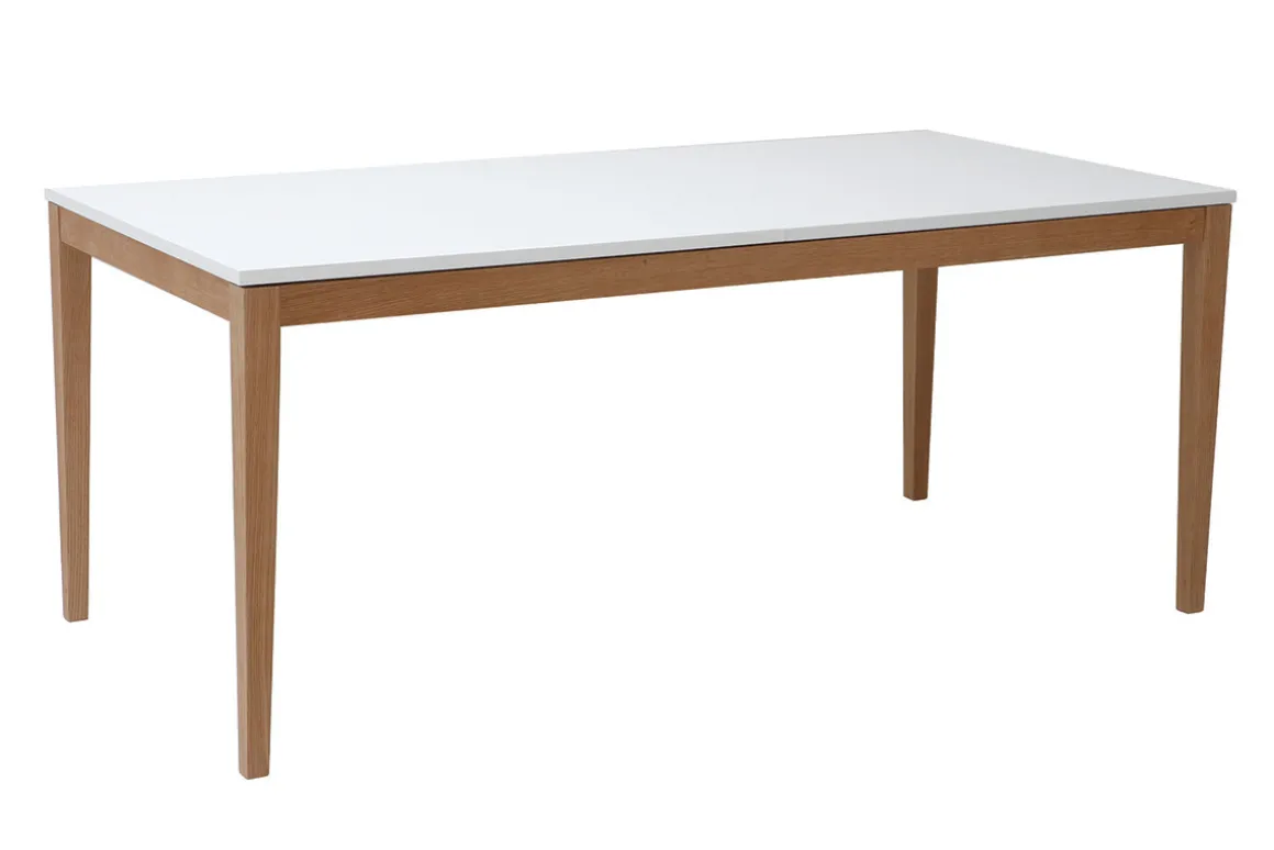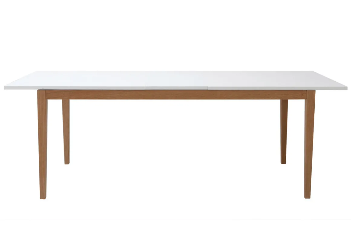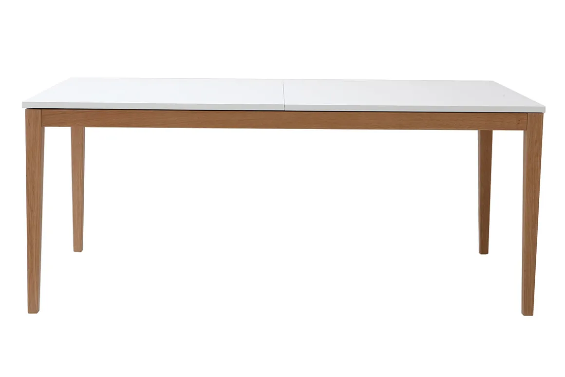 La table à manger scandinave extensible blanche pieds bois 180-260 cm DELAH, l’idéal pour les repas en nombre !