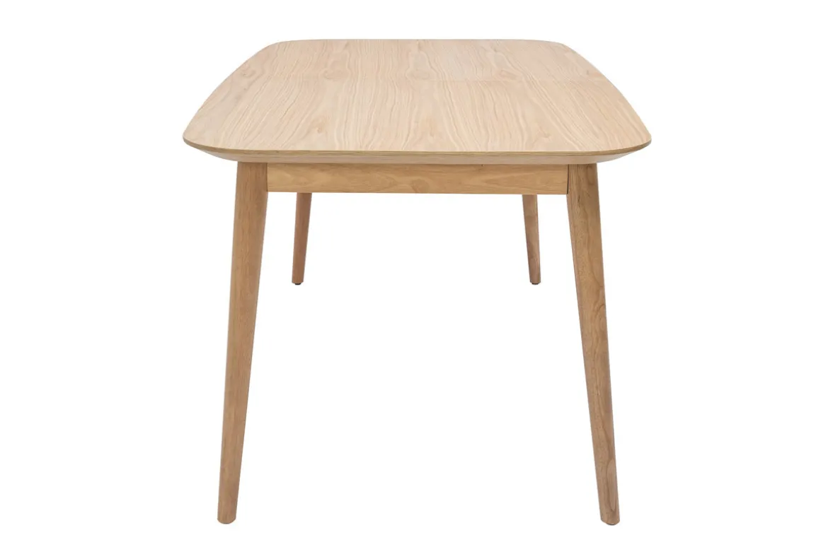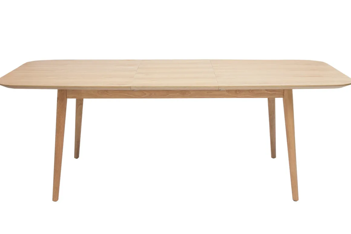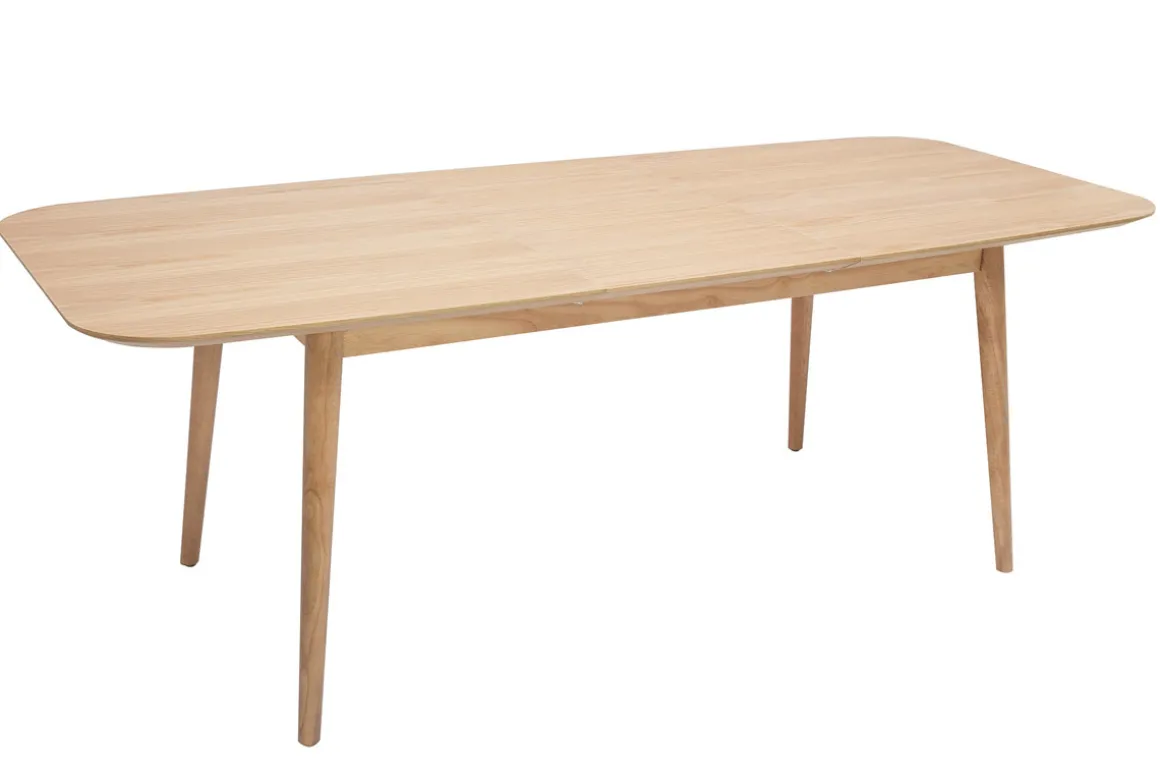 Composée d’un plateau en panneaux de fibres de bois placage chêne (dimensions L160-210 x P89.5 x H75 cm) et soutenue par un piètement en bois hévéa massif, cette grande table extensible 8-10 personnes se tient prête à nimber de douceur l’espace repas de son bois blond lumineux…
