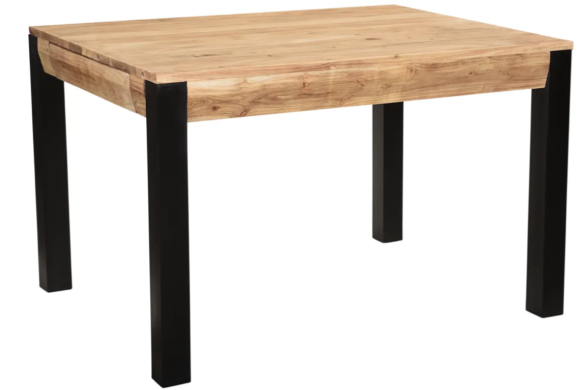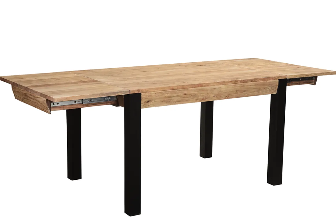 Table à manger extensible rallonges intégrées en bois massif et métal noir L120-210 cm TRAP livrée prête à monter. Montage simple, seul le piètement est à fixer.