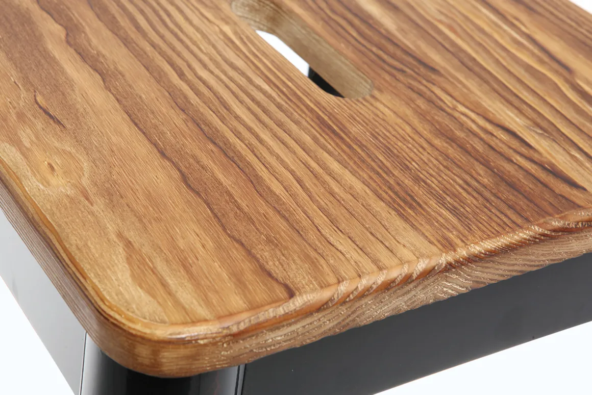 Il se compose d’une structure en métal et d’une assise fixe en bois de frêne. Le mélange de ces deux matériaux offre un rendu authentique et intemporel.