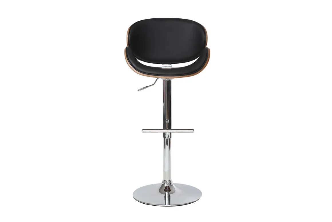 Assise et dossier en polyuréthane noir – un revêtement très facile d’entretien – contrastent agréablement avec une structure en bois cintré placage noyer. Matières et couleurs forment un duo au charme authentique dont l’ensemble est sublimé par un pied en métal chromé. à la fois intemporel et tendance, ce tabouret de bar design noir et bois foncé se plaira autant dans un intérieur contemporain que vintage rétro.