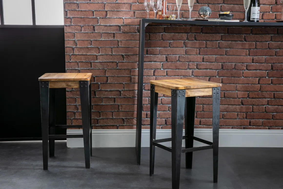 Pour un look 100% industriel, dépareillez vos tabourets de bar MADISON avec les tabourets d’appoint INDUSTRIA.