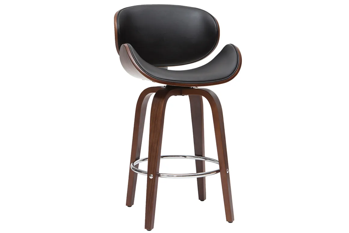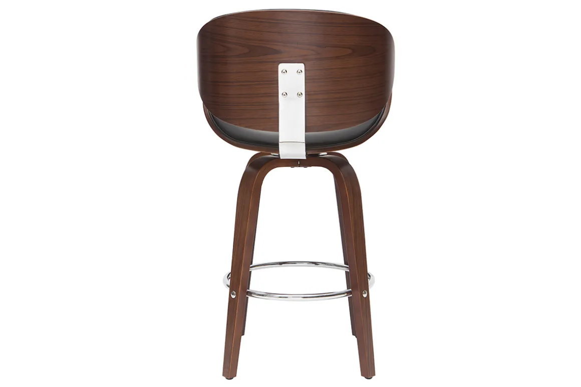 Mêlant subtilement plusieurs styles, la chaise de bar WALNUT est aussi jolie que pratique au quotidien : son assise et son dossier rembourrés ainsi que son repose-pied intégré offrent un confort dont vous ne vous lasserez pas. Pour plus de praticité, le siège pivote.