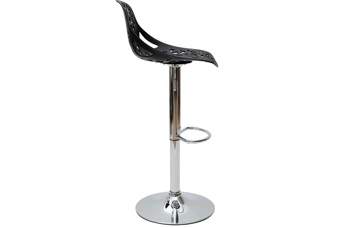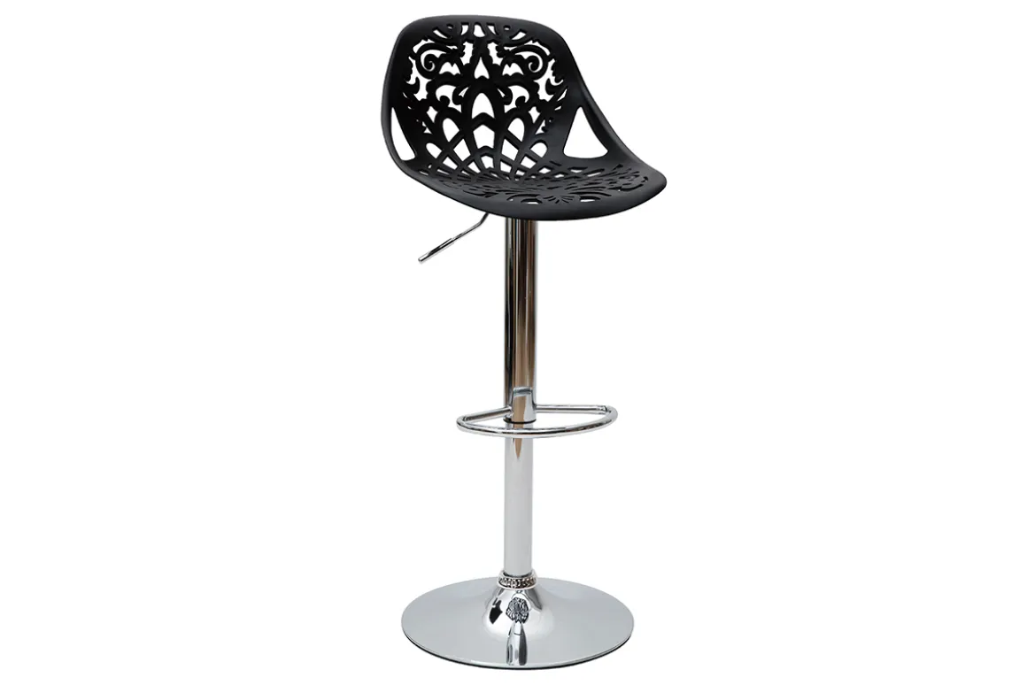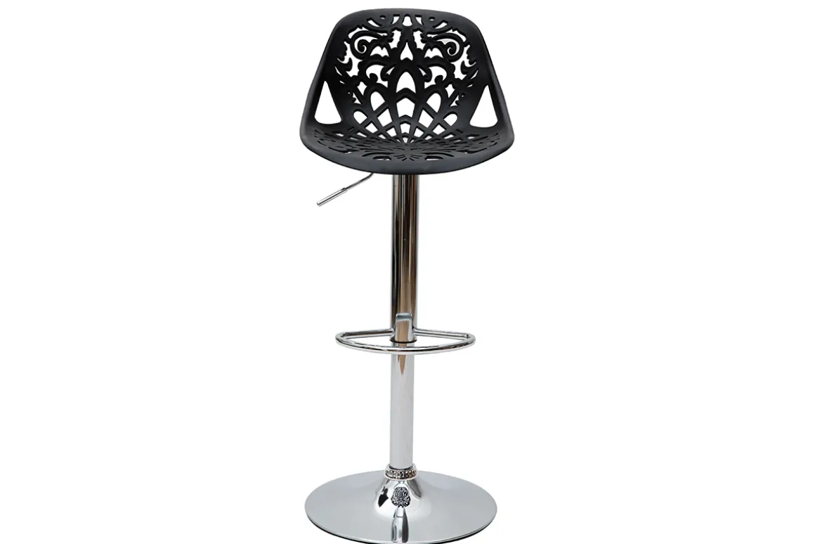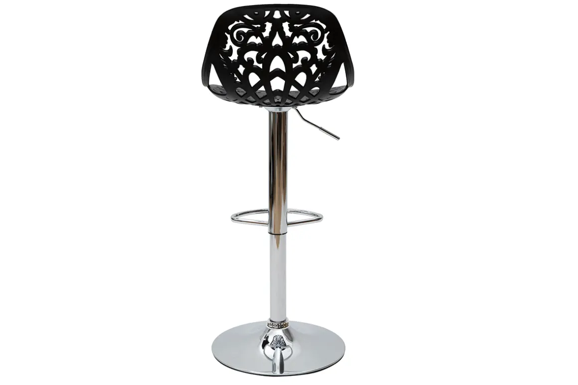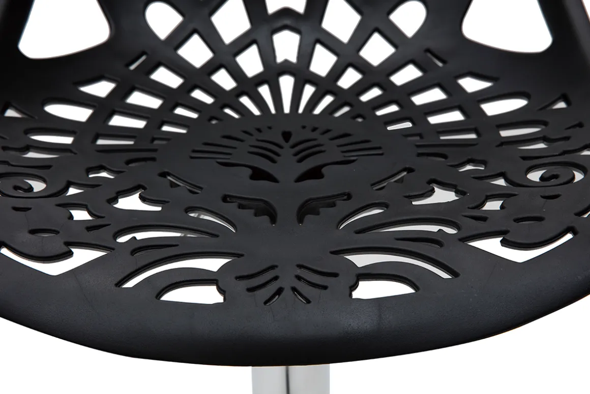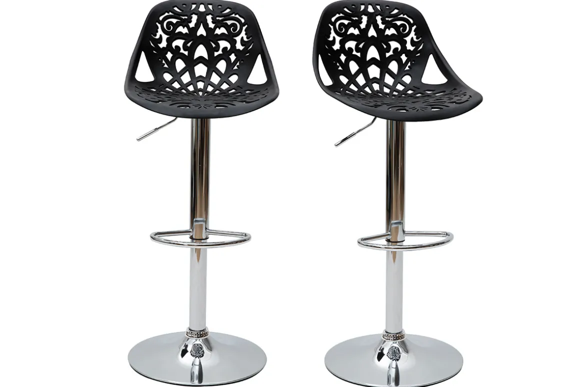 Leur assise dentelée et leur forme tout en rondeur confèrent une ambiance baroque à tous types d’intérieur. Faites le choix d’une déco originale et résistante avec ces tabourets hauts en polypropylène noir montés sur un pied en acier chromé.