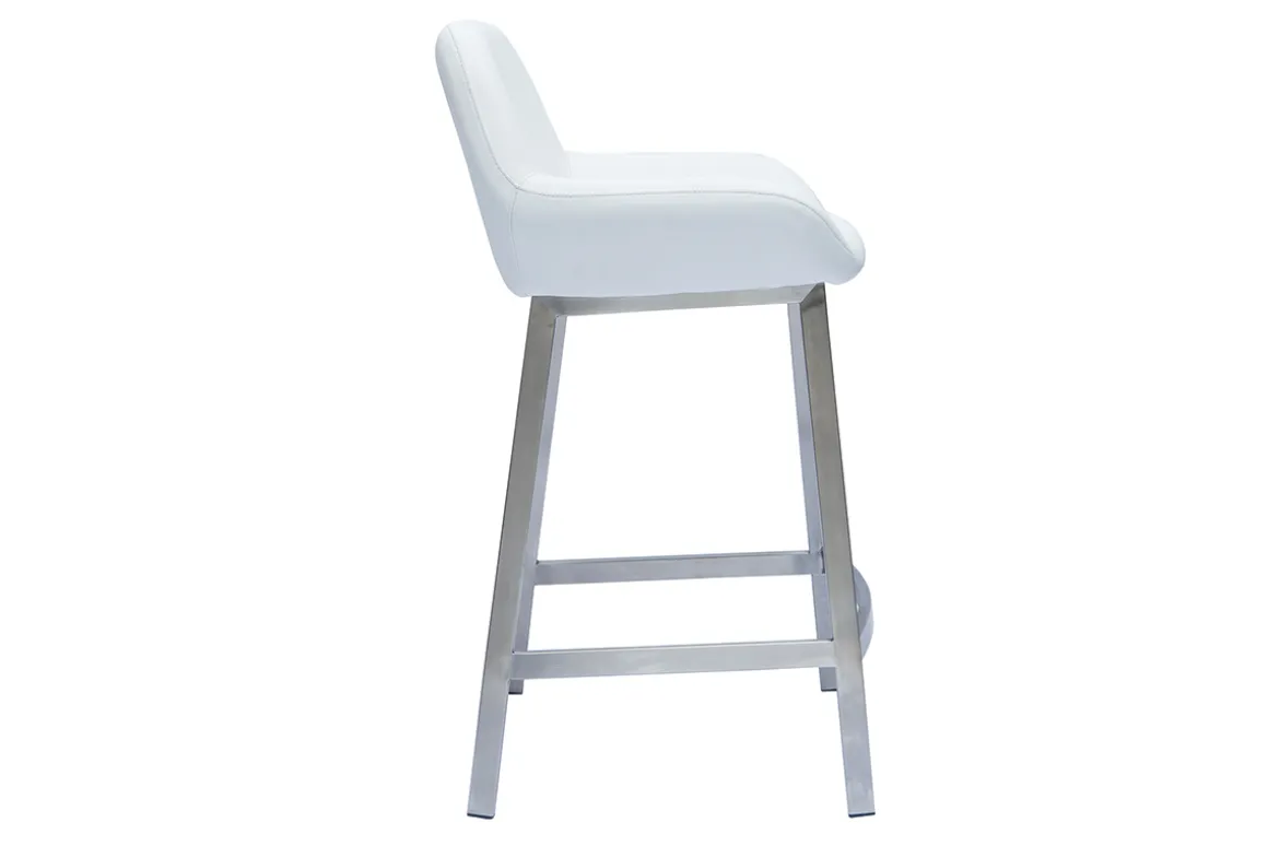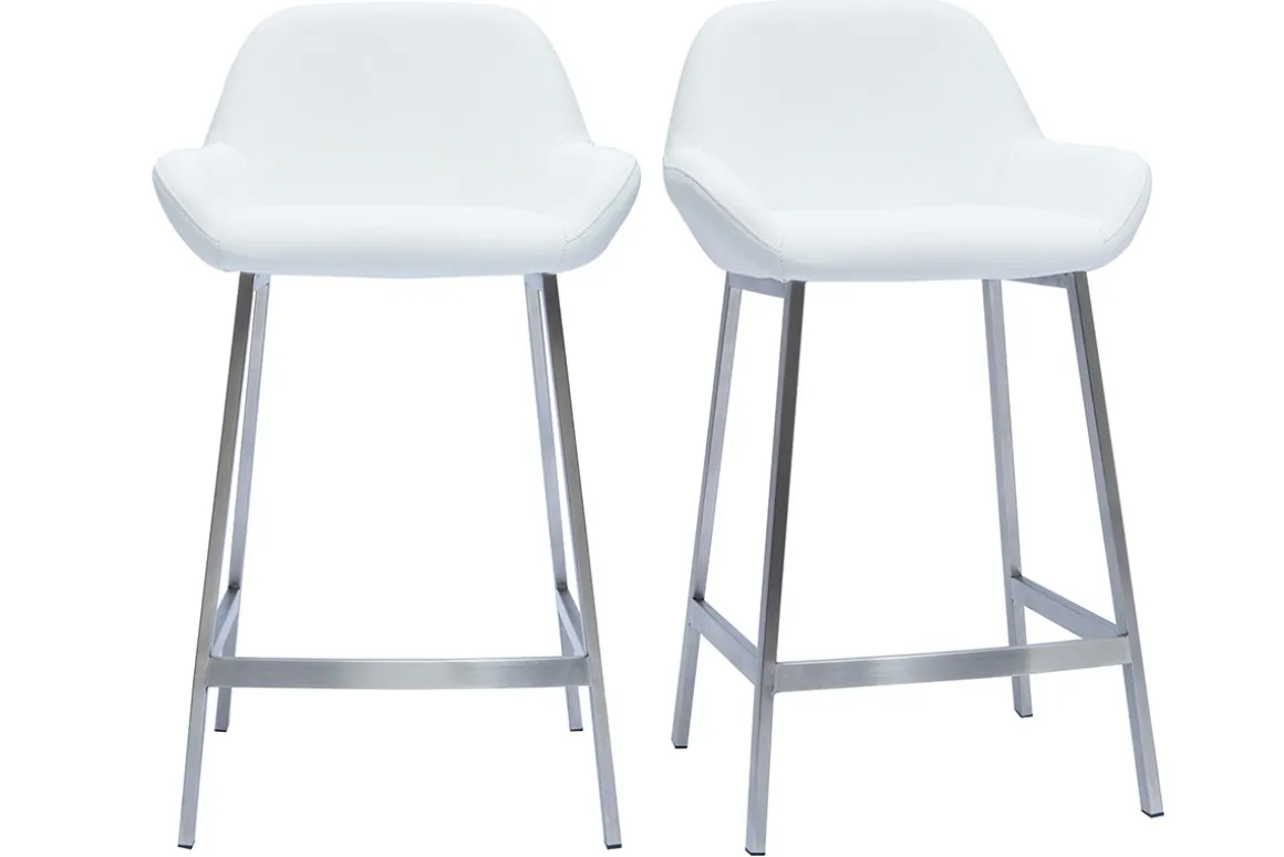 Ces tabourets de bar design s’intègrent facilement dans tous styles d’intérieur. Leur ligne sobre et élégante dessine une jolie silhouette contemporaine. Le mariage entre une assise en polyuréthane et un piètement en acier brossé donne à l’ensemble une allure moderne. Ces chaises hautes discrètes et confortables complèteront une table haute dans le séjour ou un îlot central dans la cuisine. Avec leurs 66 cm de hauteur d’assise, elles sont adaptées à des comptoirs d’environ 90 cm de haut.