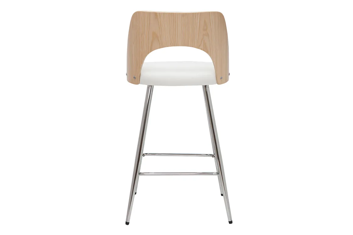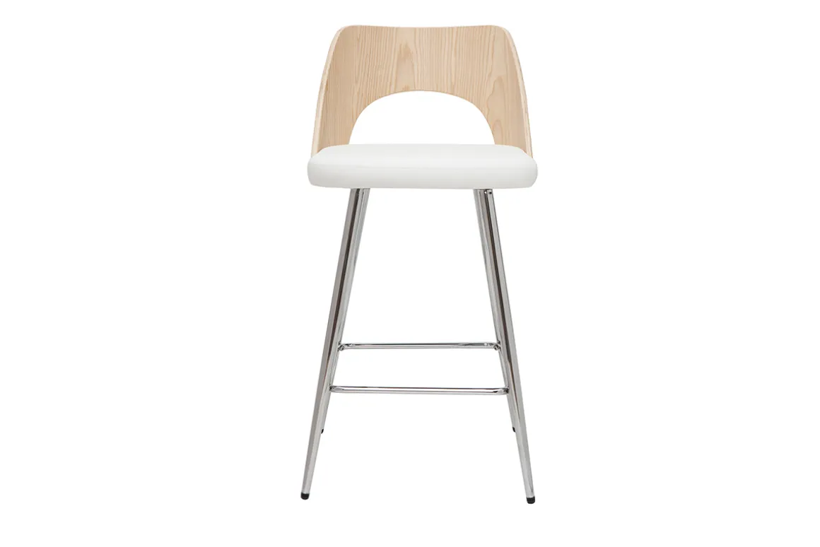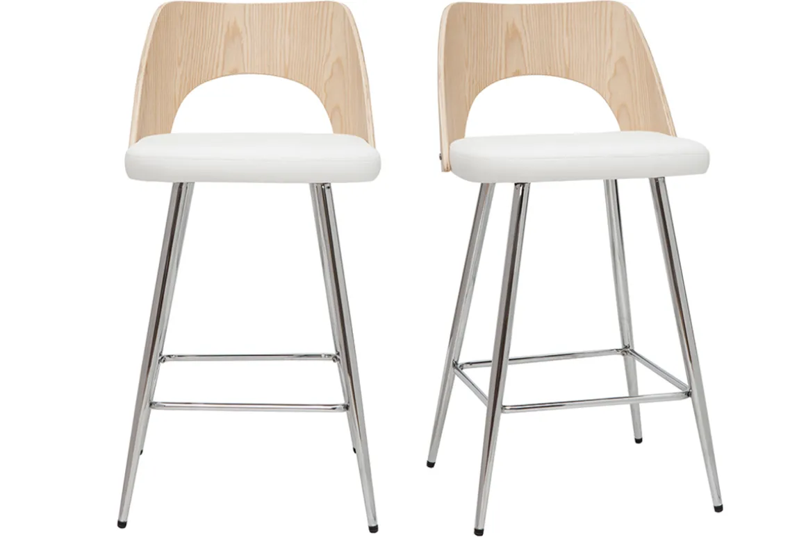 Épurés et authentiques, fonctionnels et élégants, ces tabourets de bar fixes (H66.5 cm) équilibrent couleurs et matières pour un résultat des plus design. Silhouette contemporaine et détails à l’inspiration nordique se partagent la vedette pour sublimer vos cuisines ou salles à manger. Si le revêtement blanc en polyuréthane et le piètement métal chromé se veulent résolument modernes, l’ensemble voit ses lignes adoucies par le dossier en placage chêne. Le bois clair apportera une note chaleureuse à votre intérieur, et votre coin repas n’en sera que plus tendance !
