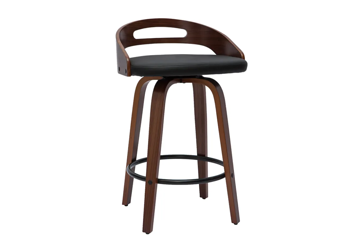 Design et chaleureux, les tabourets MANO cultivent leur propre style. Ils mêlent la chaleur du bois courbé placage noyer à la modernité d’une assise en polyuréthane noir et d’un repose-pied en métal. L’ensemble forme un rendu dans l’air du temps qui saura se fondre harmonieusement avec le reste de votre intérieur. Si ce jeu de texture les rendent terriblement tendance, il en est de même pour leurs lignes arrondies !