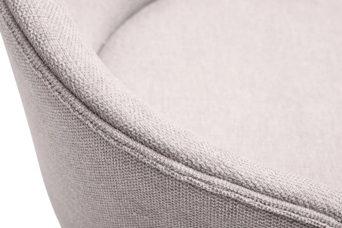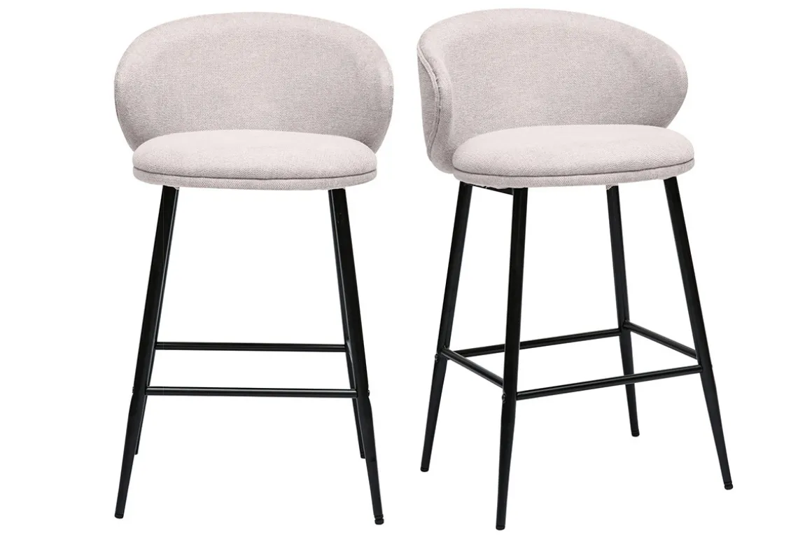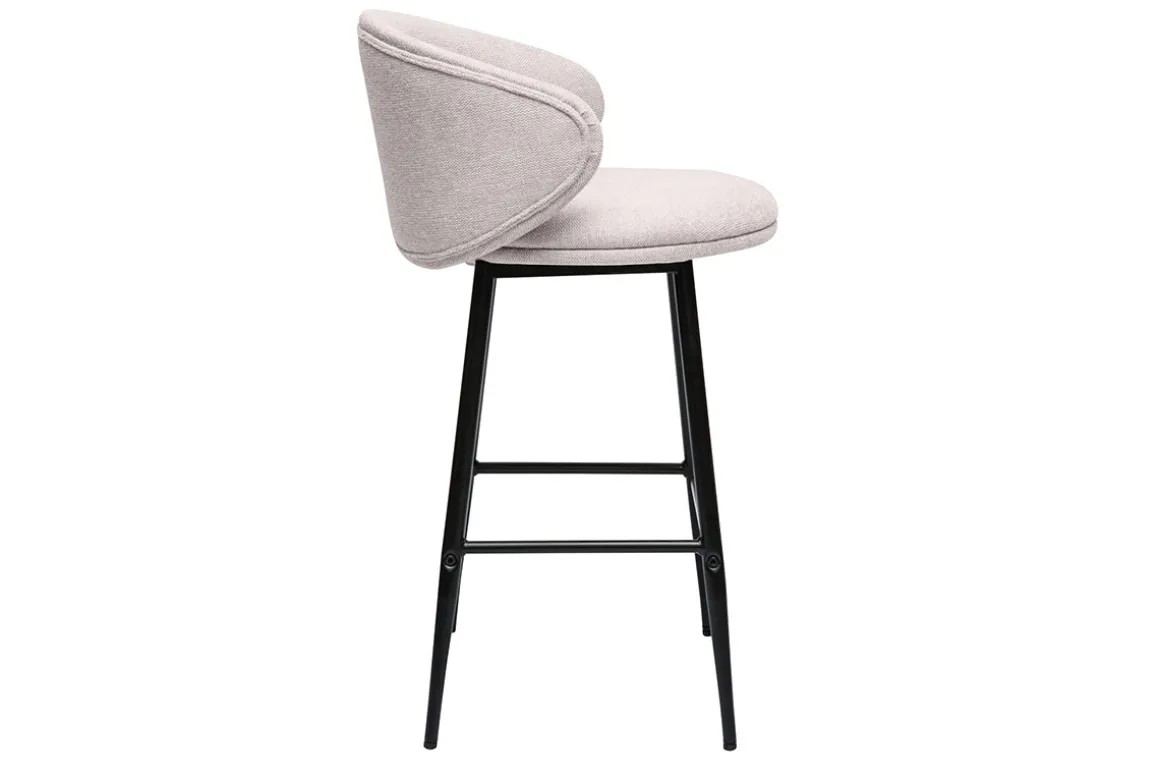 Les tabourets de bar design sont recouverts d’un tissu effet velours texturé beige (95% polyester, 5% nylon) doux au toucher. L’élégant passepoil qui dessine les contours du dossier parfait l’ensemble.