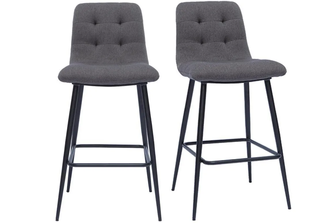 Avec leur silhouette douce mais affirmée, les tabourets de bar ESCAPE offrent un savoureux mélange d’influences. Ils se distinguent par leur ligne tout en courbes, leur allure légère et moderne et leur élégant capitonnage. Ces tabourets hauts sont habillés d’un joli tissu gris foncé (100% polyester) très doux au toucher. Le piètement fuselé en métal noir apporte une grande légèreté visuelle tout en offrant une bonne stabilité.