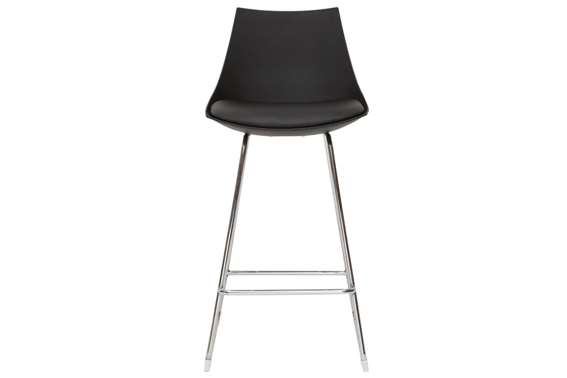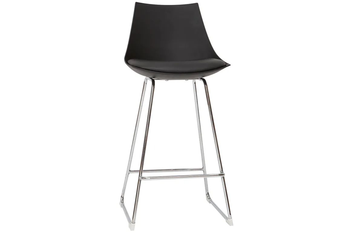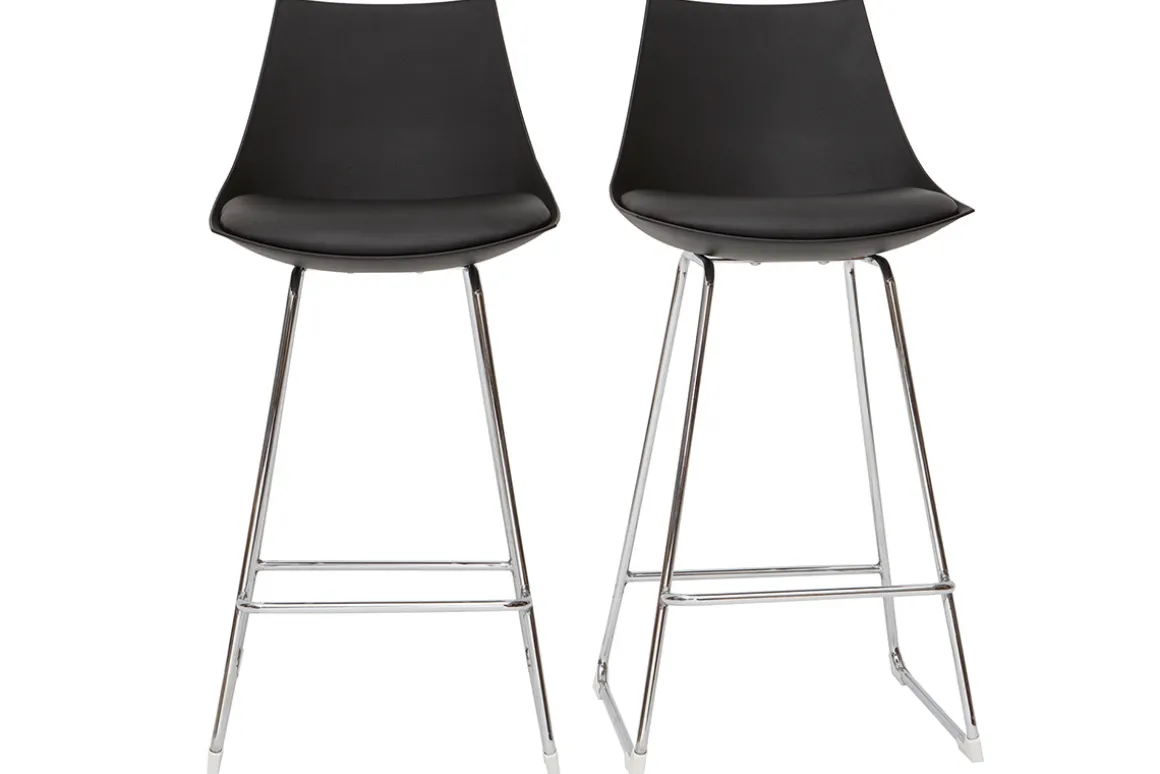 Les tabourets hauts JUNE sont discrets, design et pratiques avec leur assise en polypropylène noire et leur piètement en métal chromé. Ces deux matières offrent un rendu design et raffiné et attestent de la solidité des tabourets. Pour le confort, ils sont dotés d’un haut dossier, d’une assise rembourrée (densité 24 kg/m3) ainsi que d’un repose-pieds. Parfait pour passer un repas ou faire une réunion bien installés !