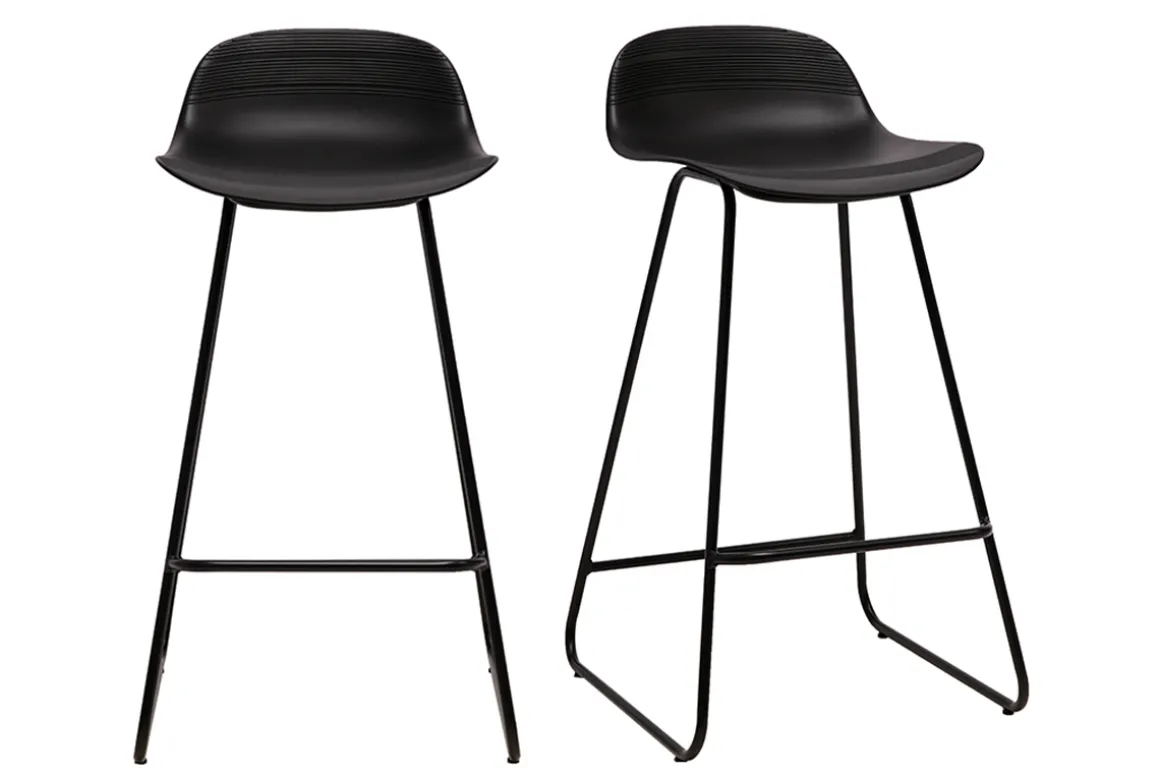 Tabourets de bar design noirs H65 cm (lot de 2) ELLA vendus par lot de 2. Livrés prêts à assembler.
