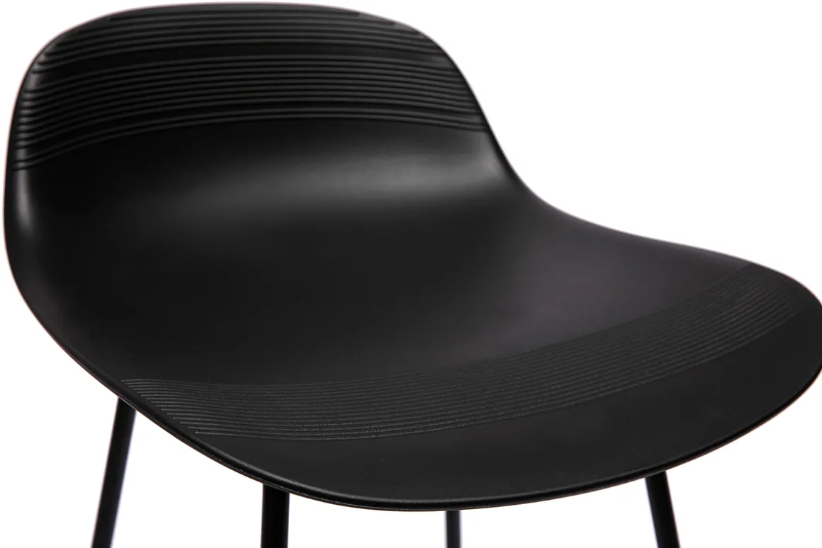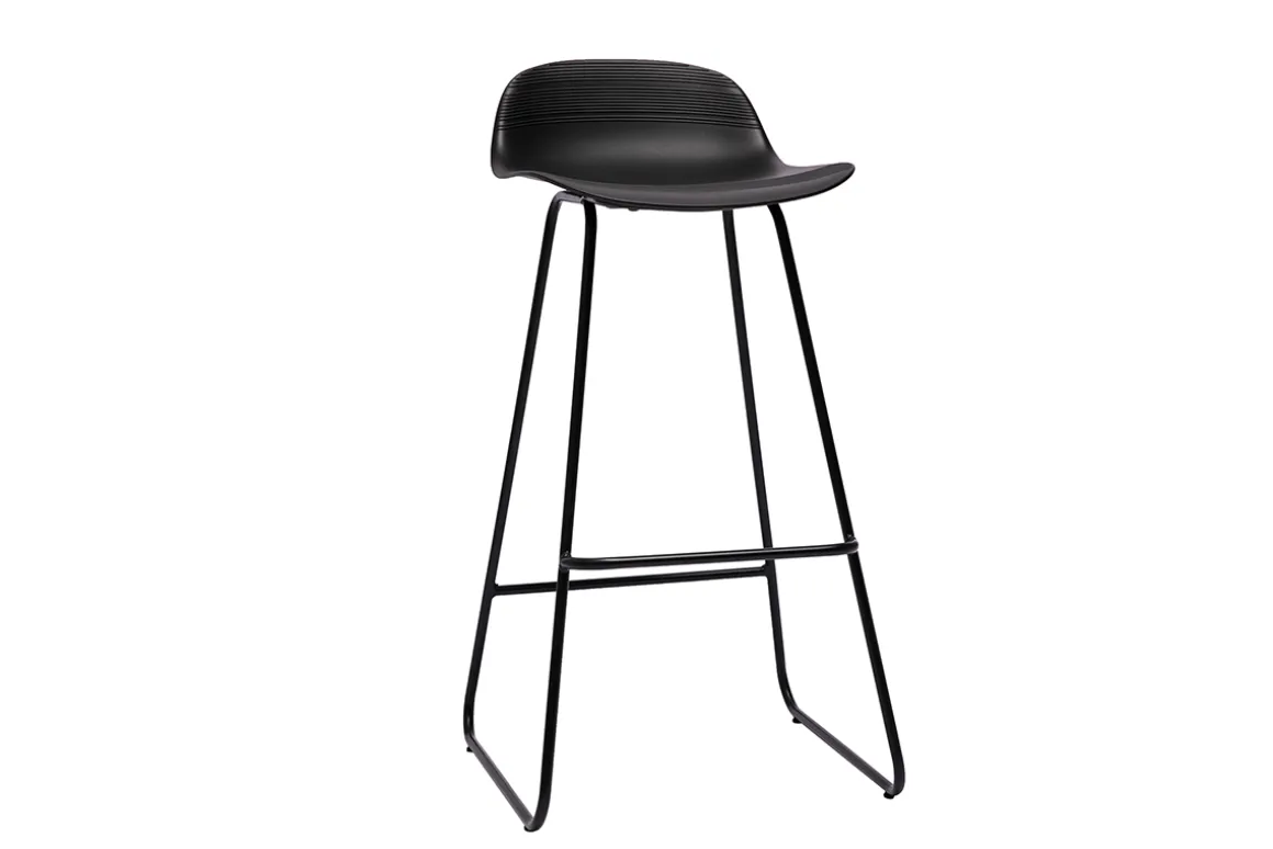 L’association du métal et du polypropylène offre un look sobre et moderne. La finesse du piètement luge donne un aspect aérien, idéal pour ne pas alourdir la décoration de la pièce. Le siège laisse apparaître un joli motif graphique très subtil qui fait toute l’originalité de ces chaises de bar design noires. Elles trouveront facilement leur place dans une cuisine, autour d’un îlot central avec une hauteur sous plateau H95 cm, ou dans un séjour autour d’une table de bar.