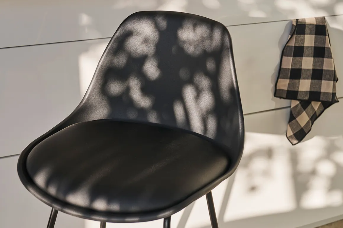 Composés de matériaux résistants et faciles d’entretien, ils sont de véritables alliés au quotidien. La structure de l’assise et du dossier est en polypropylène. Ces tabourets sont également munis d’un petit coussin d’assise garni de mousse et revêtu de polyuréthane. Leur piètement en métal fin et évasé donne un côté aérien à l’ensemble, tout en assurant une bonne stabilité. Le repose-pieds situé à 21.5 cm de hauteur est idéal pour détendre ses jambes et s’installer confortablement.