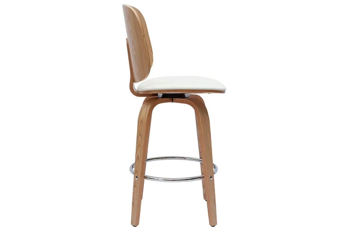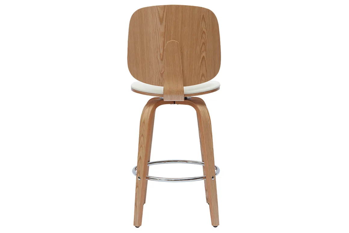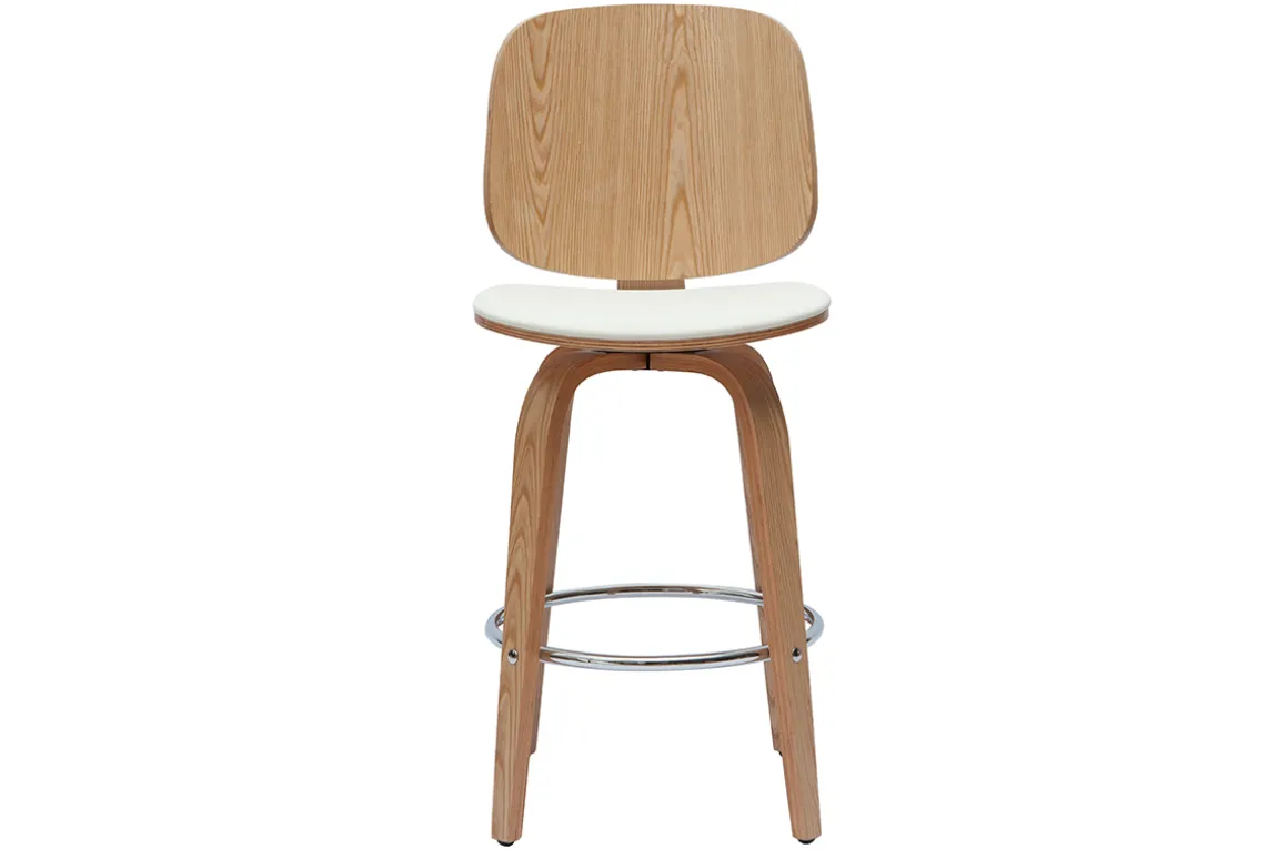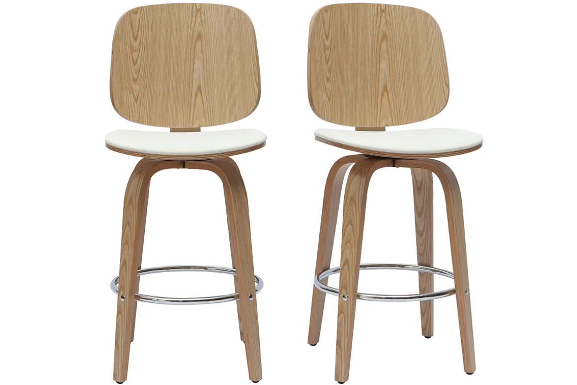 Ces chaises hautes pivotantes à 360° aux belles lignes arrondies, mixent harmonieusement matières et couleurs pour un look totalement dans l’air du temps. Elles marient à la perfection un dossier plaqué érable et des pieds en hêtre massif à une assise en polyuréthane blanc. Amis et famille seront conquis par ces tabourets aussi design que chaleureux.