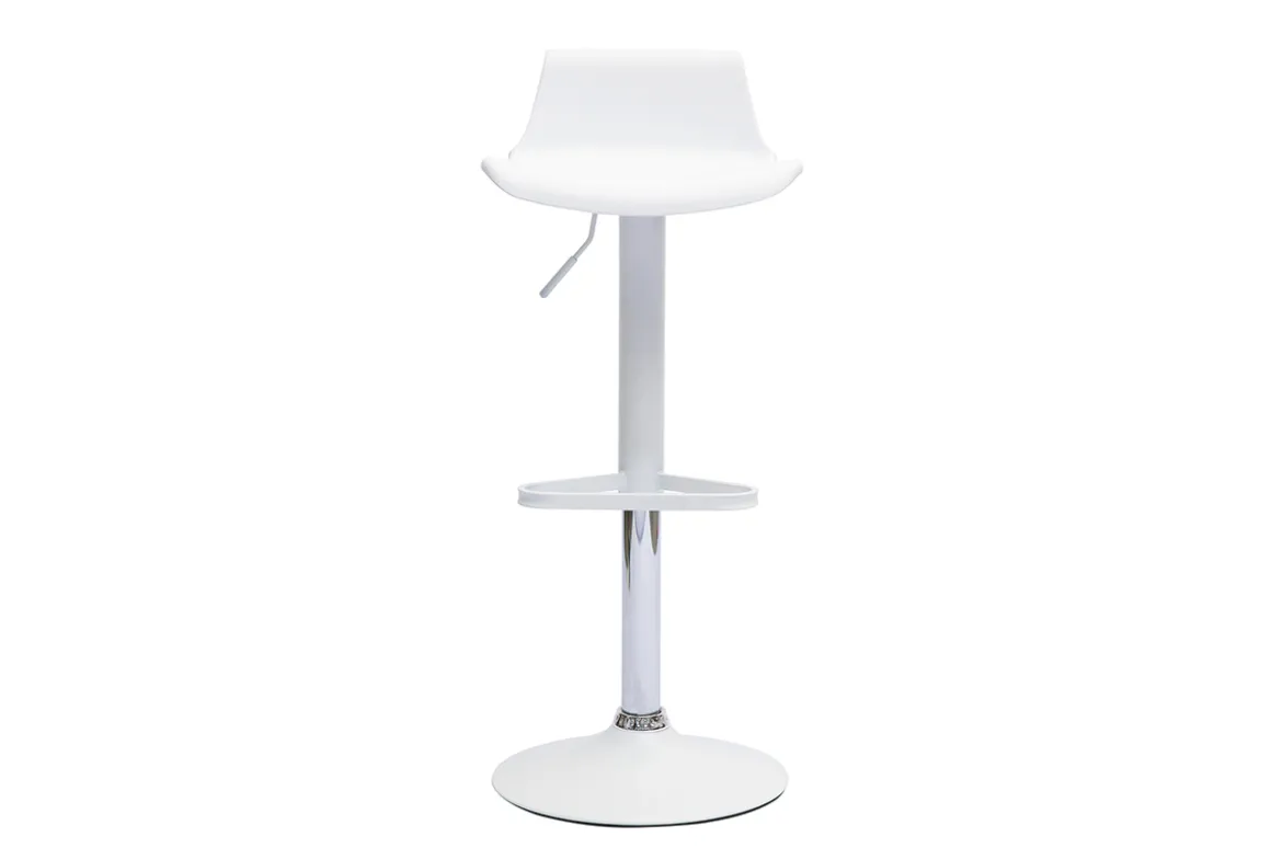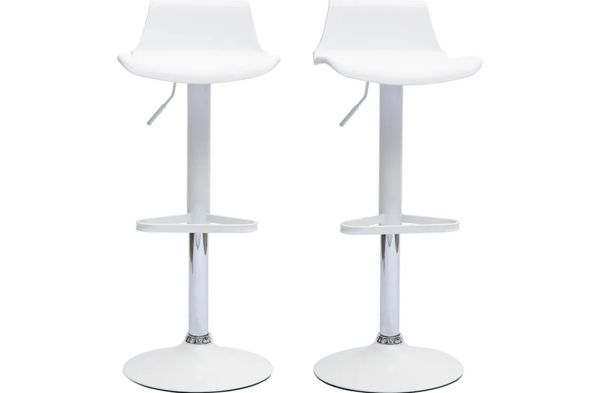 Les KRONOS : aussi esthétiques que confortables ! Le siège aux lignes incurvées en polypropylène blanc et le piètement base ronde en métal blanc – gage d’une grande stabilité – offrent un mariage de matières résistantes qui séduira à coup sûr les aficionados du style contemporain. Pour garantir une posture agréable lors de vos repas et moments de partage, ces tabourets de bar 360° sont équipés d’un repose-pieds justement positionné.