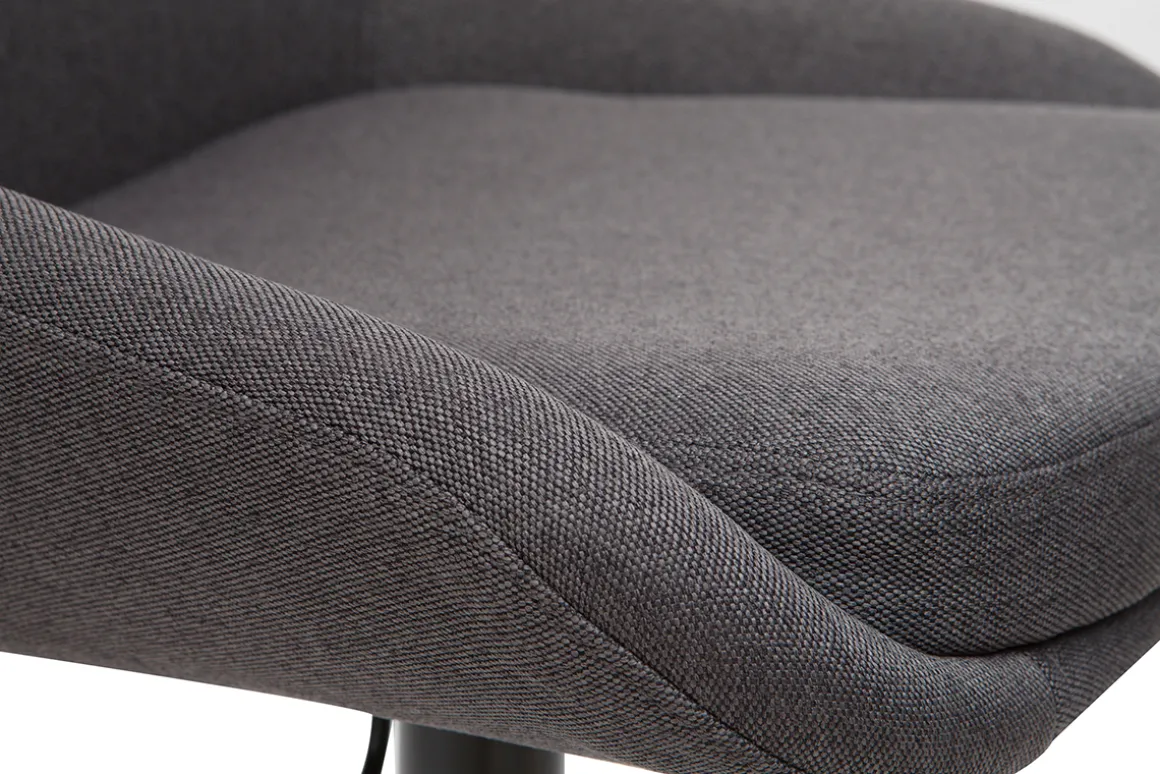 En plus d’être parfaitement fonctionnels, les tabourets de bar HOLO offrent un vrai confort d’assise grâce à leur coque enveloppante. L’assise et le dossier sont rembourrés (densité mousse 24 kg/m3) et entièrement recouverts d’un magnifique tissu gris (100% polyester) ultra doux et très résistant. Le dossier haut (H38 cm) et le repose-pied intégré renforcent un peu plus l’idée de confort.